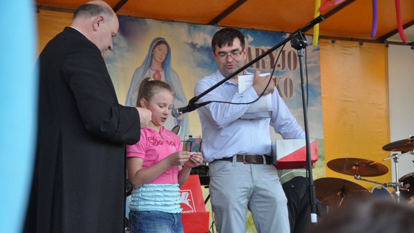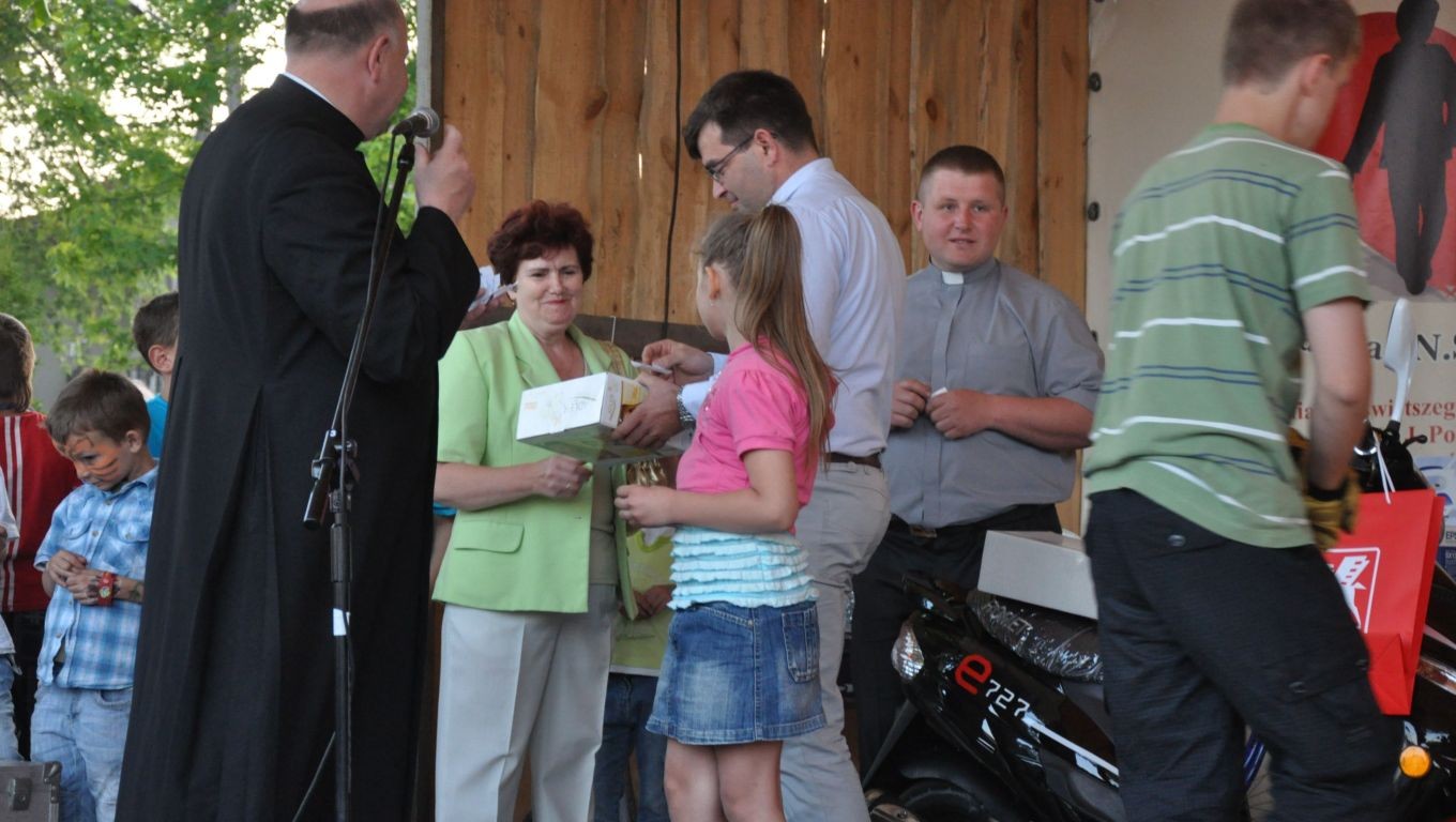 Piękna pogoda powitała wszystkich, którzy przybyli na odbywający się co roku w naszej parafii festyn parafialny. Program został przygotowany dla każdego, także całe rodziny przybyły, aby dobrze się bawić. Hasłem festynu zorganizowanego dla uczczenia Matki Najświętszej oraz podziękowania Naszym Mamom była Wielka majówka z mamą i tatą. Głównym celem, dla którego została przygotowana majówka było zebranie środków na rzecz letnich kolonii dzieci nad morzem (Stegna koło Gdańska).