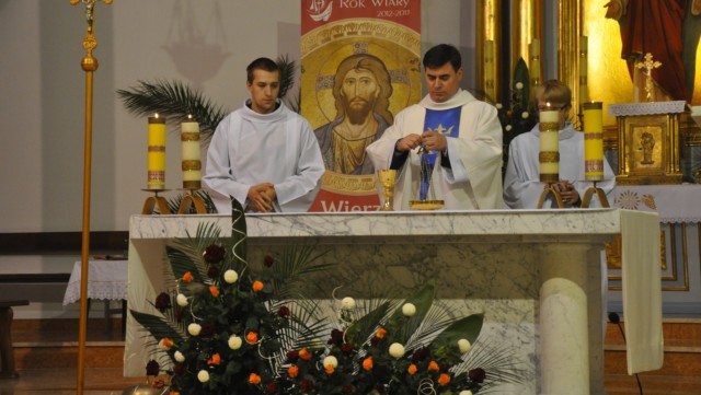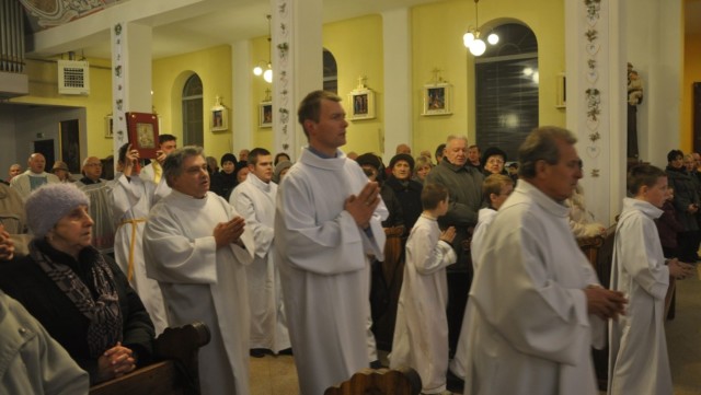 W homilii ksiądz proboszcz wspomniał o 75 rocznicy sprowadzenia do naszego kościoła obrazu Maryi Matki Miłosierdzia. Wizerunek ten został okryty sławą m.in. przez naszego narodowego wieszcza Adama Mickiewicza w Inwokacji do Pana Tadeusza, zaś koronacja obrazu w 1927 roku była wyjątkowym wydarzeniem w przedwojennej Polsce. Prawdopodobnie wspomniana koronacja przyczyniła się do sprowadzenia także i do naszej parafii kopii obrazu z Ostrej Bramy, który od początku był okryty wyjątkową czcią. Ksiądz proboscz wspomniał, że sam obraz jest związany ze Zwiastowaniem i przyjęciem woli Pana Boga przez Maryję.