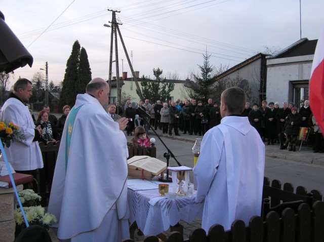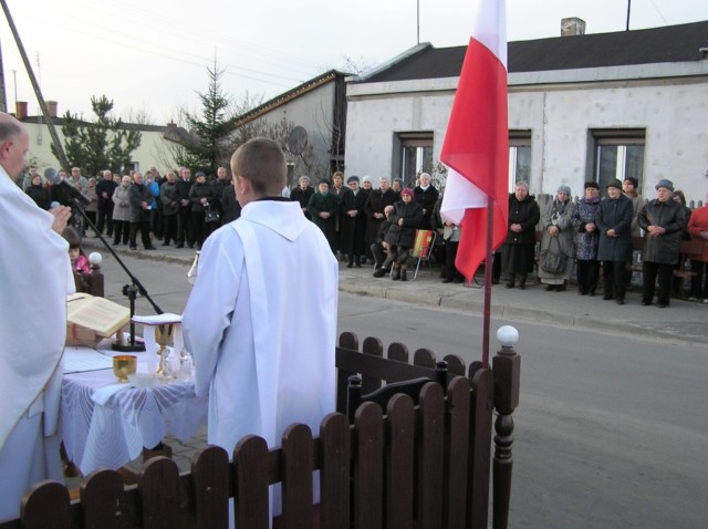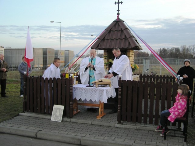 Tydzień wcześniej, 11 listopada, została odprawiona msza święta przy ulicy Piaskowej celebrowana przez księdza proboszcza. Wizerunek Matki Bożej Ostrobramskiej znajdujący się w tamtejszej kapliczce został przywieziony 5 lat temu przez członków Męskiego Koła Różańcowego, którzy odbyli wtedy pielgrzymkę do Ostrej Bramy. Przy kapliczce zgromadzili się okoliczni mieszkańcy a mężczyźni ze wspomnianego koła czynnie uczestniczyli w liturgii.