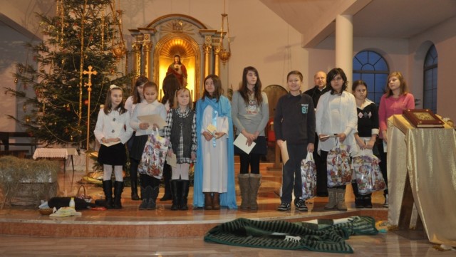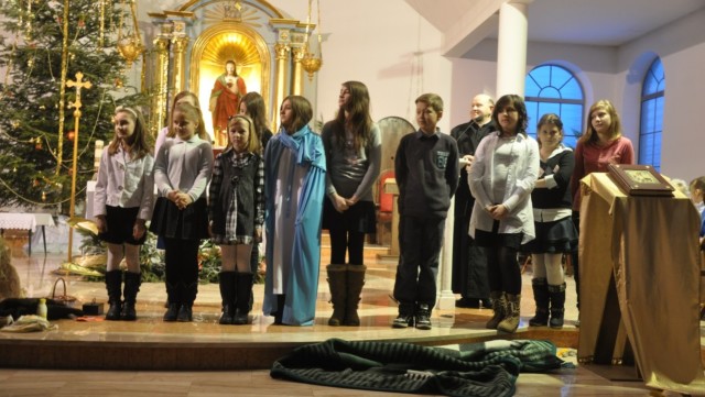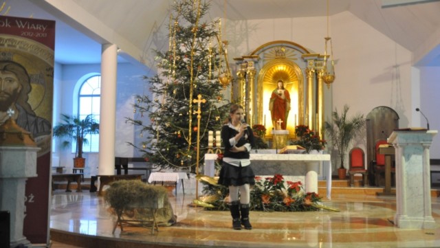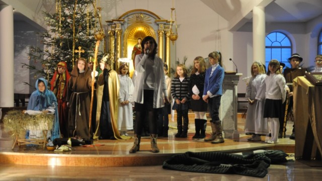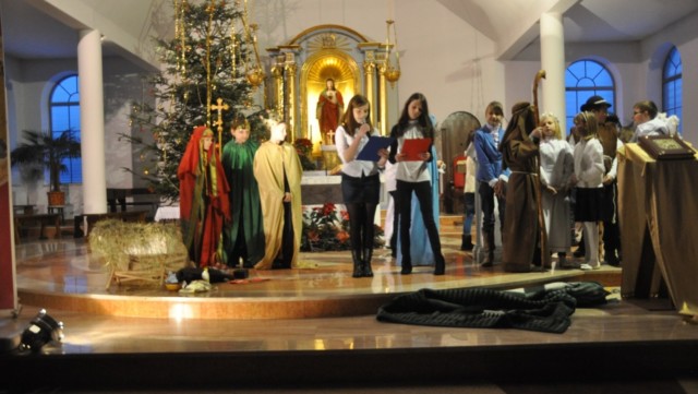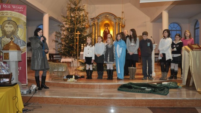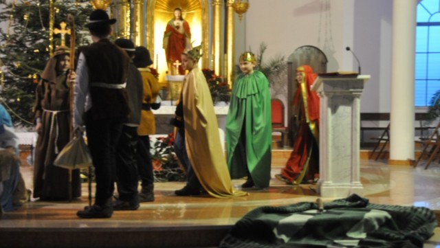 W niedzielę 13 stycznia zgromadzeni w kościele Najświętszego Serca Jezusowego parafianie, przeżywali raz jeszcze cud betlejemskiej nocy. Stało się to za sprawą dzieci ze Szkoły Podstawowej nr 13, które w piękny sposób przedstawiły historię narodzin Jezusa. W przedstawieniu tradycyjnie wystąpiła Święta Rodzina - Józef (Bartosz Łącki), Maryja (Natalia Zimnicka), Jezus, pasterze, trzej królowie i aniołowie. Nie zabrakło też dzieci odwiedzających narodzone Dzieciątko.
