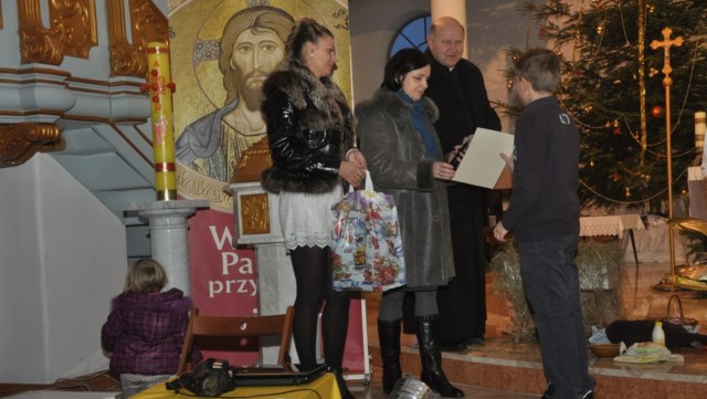 Słowa uznania za owocną współpracę ze szkołą na ręce pani dyrektor Kamilli Madzio złożył ksiądz proboszcz Ryszard Stanek. Małym artystom serdecznie podziękował za wzruszające przeżycia betlejemskiej nocy.