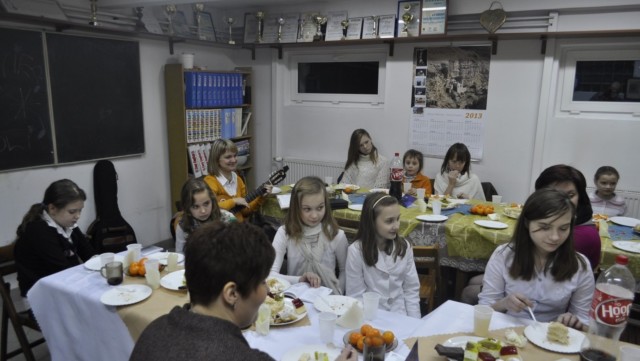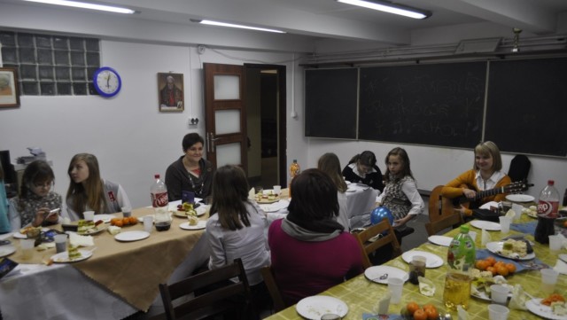 W ubiegłą niedzielę 13.01.2013r., w parafialnej świetlicy Mamusia odbyło się spotkanie opłatkowe, w którym uczestniczyły dziewczęta z parafialnej scholi, rodzice, ksiądz Proboszcz i oczywiście prowadząca scholę pani Monika Pawlikowska. Po Ewangelii przeczytanej przez panią Monikę i po podzieleniu się opłatkiem Schola wraz z księdzem Proboszczem zaśpiewała kolędy. Rodzice przygotowali słodki poczęstunek. Każdy życzył sobie szczęścia i przede wszystkim zdrowia oraz Bożego błogosławieństwa, czego życzymy też wszystkim parafianom.