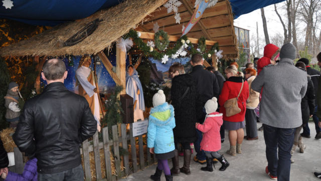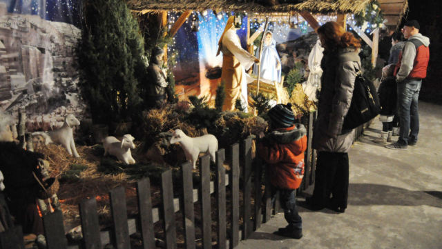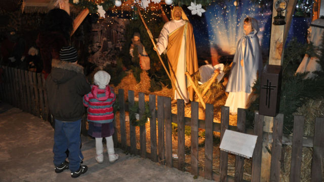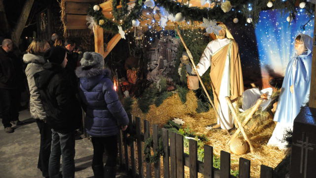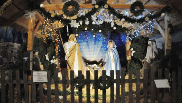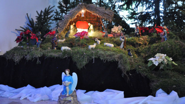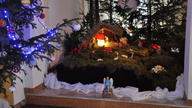 Zdjęcia szopki w kościele.