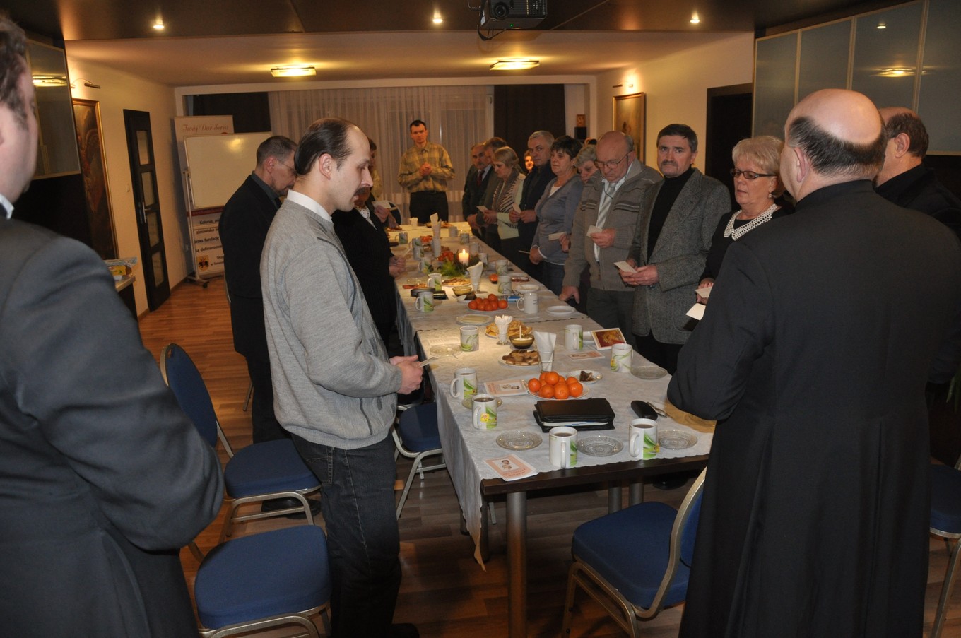 W niedzielę 13 stycznia po wieczornej Eucharystii odbył się Opłatek Męskiego Koła Różańcowego. Oprócz panów z MKR w spotkaniu wzięli udział: ksiądz proboszcz oraz ksiądz wikariusz Dominik Lubiński. Poza dzieleniem się opłatkiem czas upłynął przy śpiewaniu tradycyjnych, pięknych kolęd przy akompaniamencie na gitarze naszego organisty p. Mirosława oraz na przyjacielskich rozmowach.