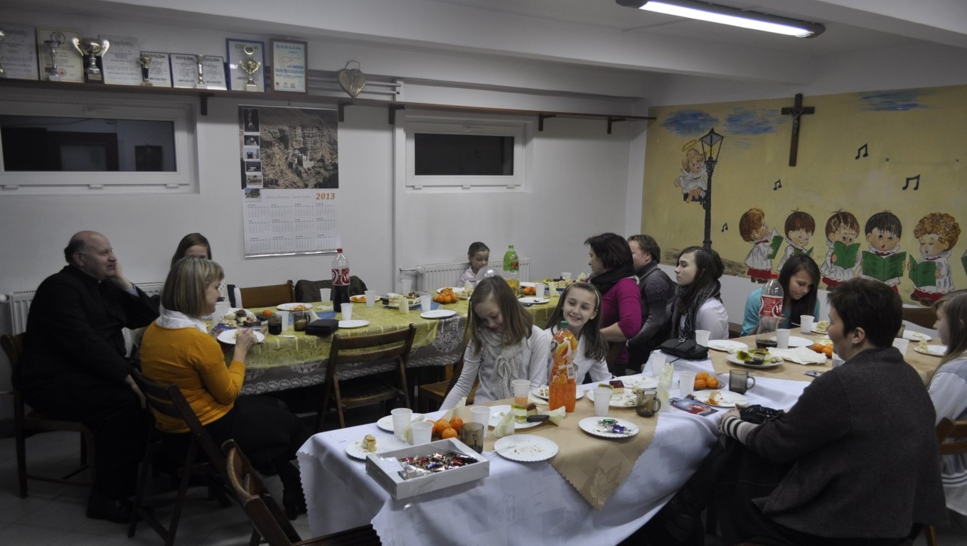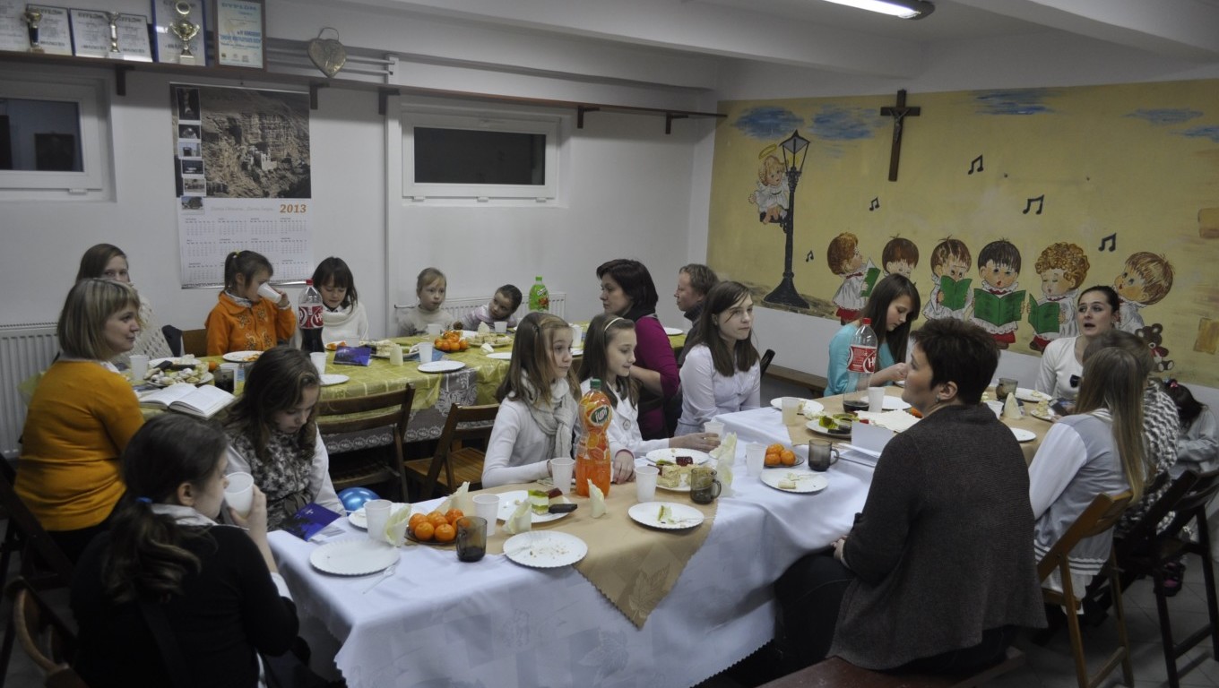 W ubiegłą niedzielę 13.01.2013r., w parafialnej świetlicy Mamusia odbyło się spotkanie opłatkowe, w którym uczestniczyły dziewczęta z parafialnej scholi, rodzice, ksiądz Proboszcz i oczywiście prowadząca scholę pani Monika Pawlikowska. Po Ewangelii przeczytanej przez panią Monikę i po podzieleniu się opłatkiem Schola wraz z księdzem Proboszczem zaśpiewała kolędy. Rodzice przygotowali słodki poczęstunek. Każdy życzył sobie szczęścia i przede wszystkim zdrowia oraz Bożego błogosławieństwa, czego życzymy też wszystkim parafianom.