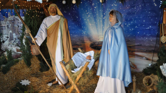 Zdjęcia szopki w kościele.