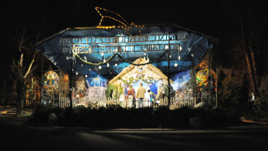 Zdjęcia szopki wieczorem.