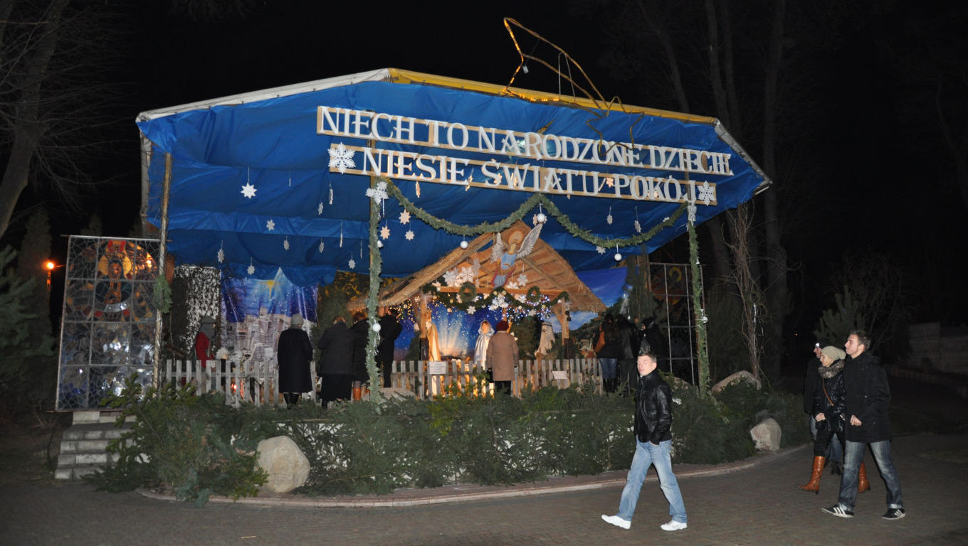 Źródło:Od 2005 roku nasza parafia podtrzymuje tradycję budowy żywej szopki, stanowiącej atrakcję nie tylko dla parafian, ale również mieszkańców naszego miasta. Oprócz Świętej Rodziny, Trzech Króli i pasterzy, którzy przybyli oddać hołd nowonarodzonemu Jezusowi, nieodłącznym elementem żywej szopki są zwierzęta, które znajdują się w osobnej zagrodzie. Dzięki natrojowemu oświetleniu szopkę można odwiedzić nie tylko w ciągu dnia, ale również wieczorem.