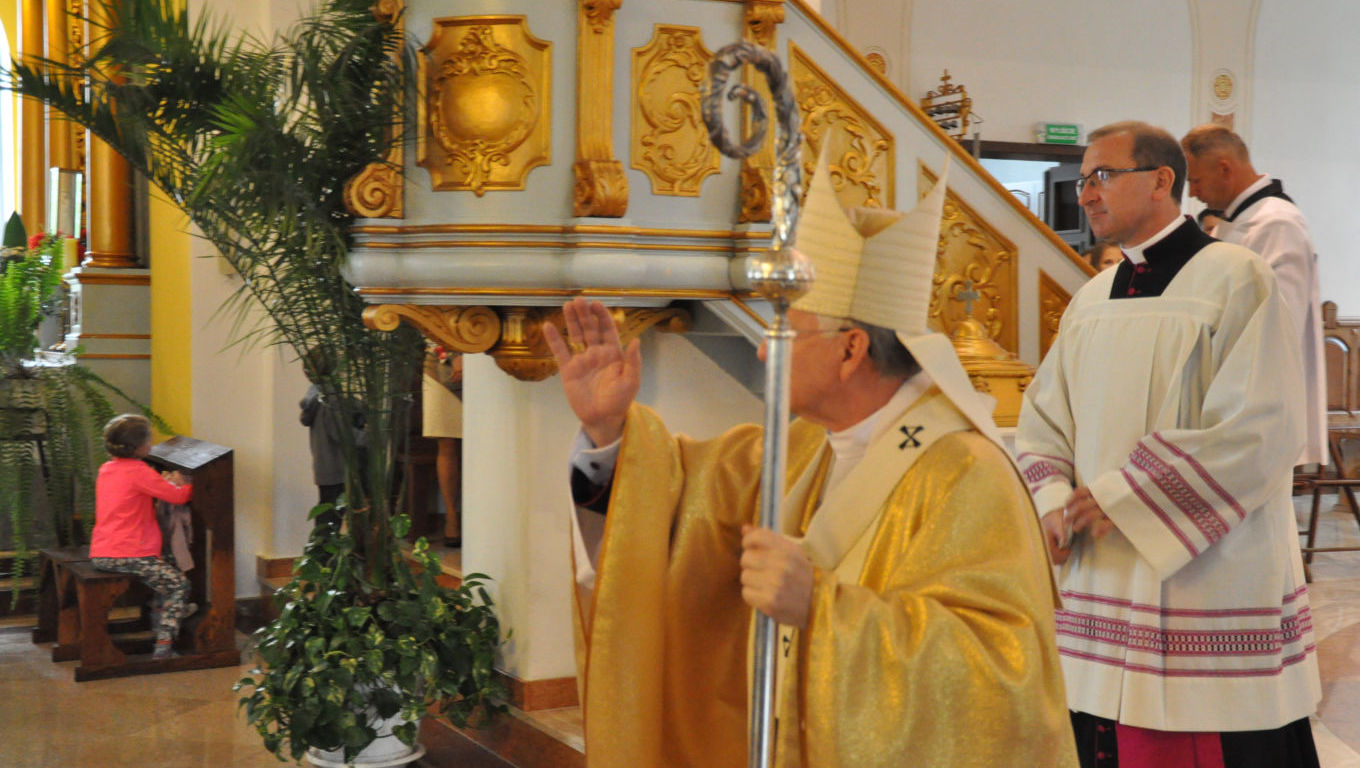 Na Mszy Świętej o godzinie 1030 ksiądz proboszcz w obecności licznie zgromadzonych wiernych powitał dostojnego gościa i zapoznał z historią naszej parafii. Ksiądz arcybiskup wysłuchał też sprawozdania z okresu ostatnich pięciu lat czyli od ostatniej wizyty kanonicznej, którą w 2009 roku przeprowadził ks. bp Ireneusz Pękalski. Pełny tekst sprawozdania można pobrać tutaj.