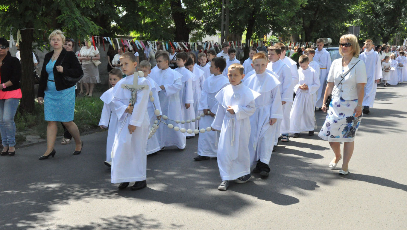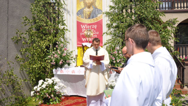 W czwartek 19 czerwca 2014 roku świętowaliśmy Uroczystość Najświętszego Ciała i Krwi Chrystusa czyli Boże Ciało. W polskiej tradycji jest to jedno z największych świąt. Jak co roku wyszliśmy z procesją do czterech ołtarzy, aby publicznie wyznać naszą wiarę i uczcić Chrystusa obecnego w Najświętszym Sakramencie.