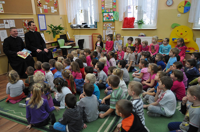 Nasi kapłani po raz kolejny aktywnie włączyli się w ogólnopolską kampanię społeczną Fundacji ABC XXI Cała Polska Czyta Dzieciom! Tym razem 11.12 b.r. do zaprzyjaźnionego Przedszkola Samorządowego w Ujeździe na głośne czytanie przybył ks. wikariusz Piotr Kępniak, który natychmiast zdobył dziecięcą sympatię. Nasz duchowny wraz z miejscowym ks. wikariuszem - Rolandem Białasem w piękny, mądry sposób przybliżyli milusińskim postać św. Mikołaja, zwyczaje bożonarodzeniowe, a także zachęcali do wszelkich działań wolontarystycznych na miarę kilkulatków! Urocze przedpołudnie zakończyło wzajemne złożenie sobie serdecznych, płynących z głębi serca, świątecznych życzeń. Postawa godna naśladowania! Przypomnijmy, iż Episkopat Polski nagrodził Fundację ABC XXI za wzorowe promowanie pięknej, poprawnej polszczyzny, a także przybliżanie najważniejszych wartości współczesnego świata.