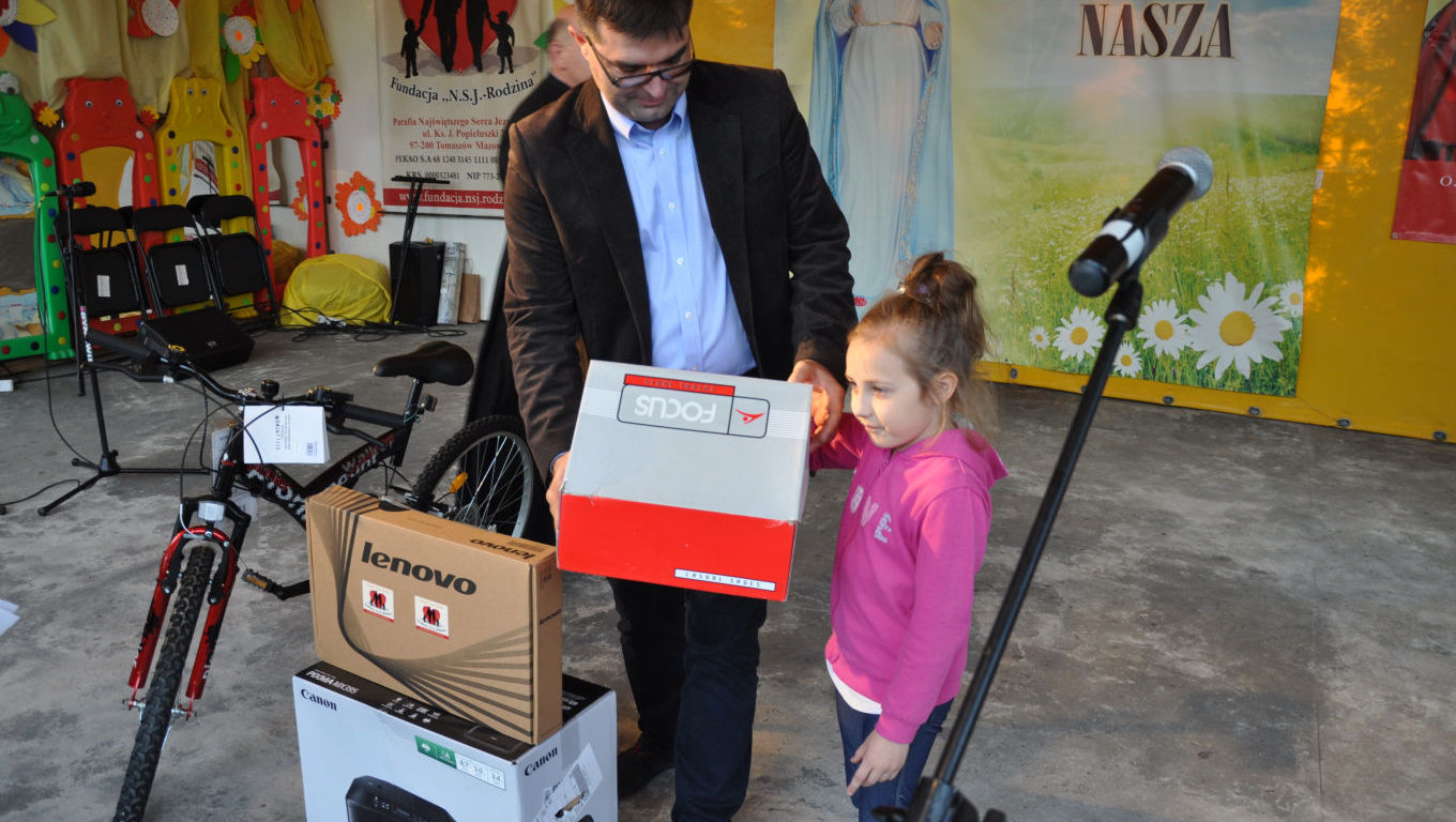 Festyn rozpoczął tradycyjnie ksiądz proboszcz witając wszystkich przybyłych i odczytując listę sponsorów, dzięki którym nasza Fundacja N.S.J. - Rodzina mogła zorganizować rodzinną zabawę. Później wszyscy powitali uczestników Marszu dla Życia i Rodziny, który przybył z sąsiedniej parafii Św. Antoniego. Wspomniany marsz miał na celu zamanifestowanie szacunku dla wartości jaką jest w życiu człowieka rodzina.