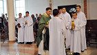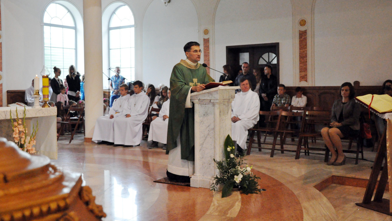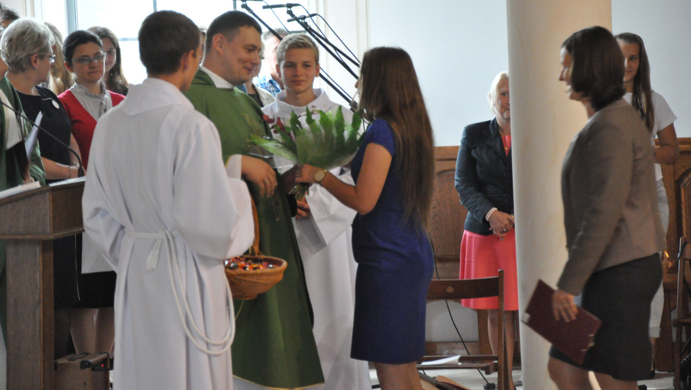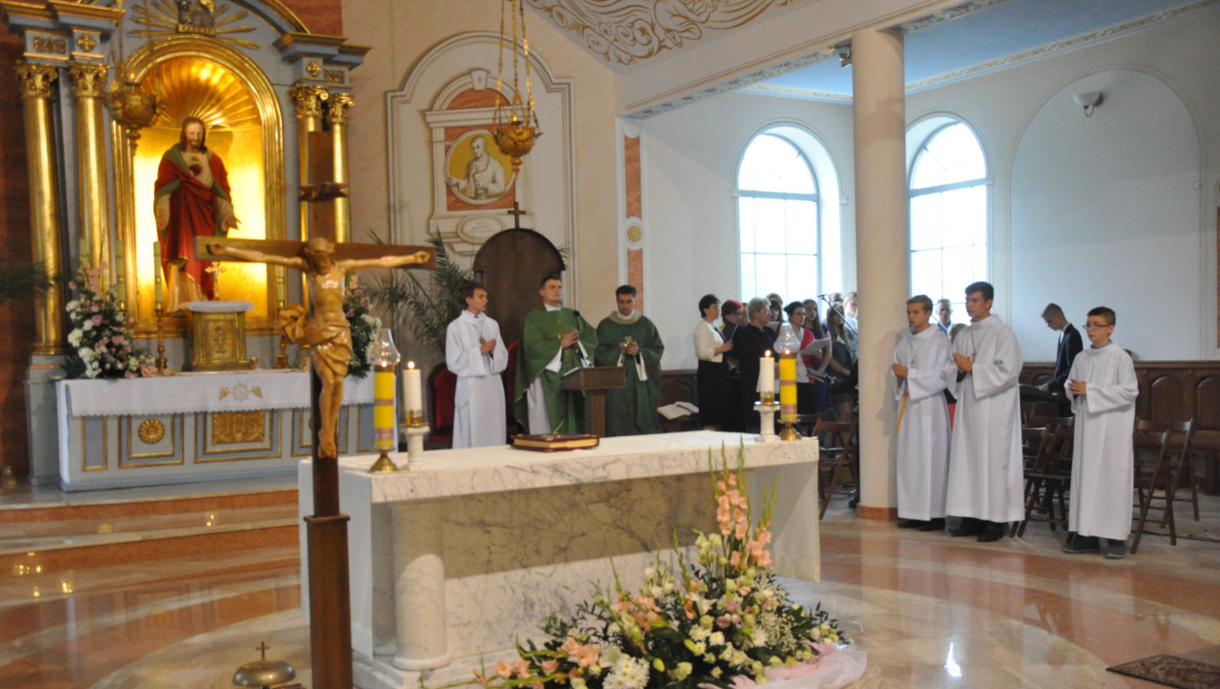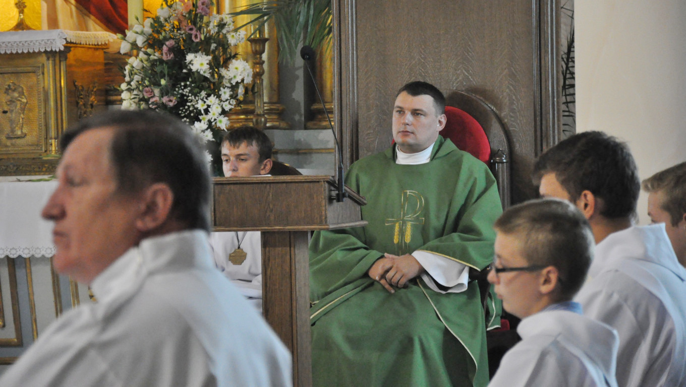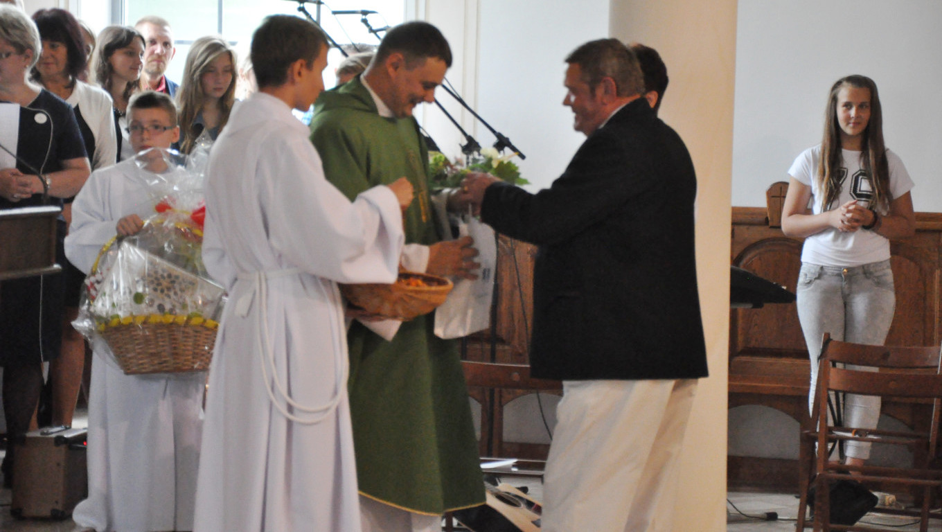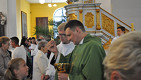 W niedzielę 24 sierpnia o godzinie 1030 ksiądz Łukasz razem z księdzem proboszczem celebrowali Mszę Świętą, na której ksiądz Łukasz pożegnał się z naszą parafią. Ksiądz Łukasz pracuje w naszej parafii od września 2013 roku i z dniem 30 sierpnia odchodzi do parafii św. Maksymiliana Kolbe w Pabianicach. Mimo krótkiego pobytu w naszej parafii był bardzo lubiany przez wszystkich dzięki swojej serdeczności i poczuciu humoru. Po Eucharystii przedstawiciele grup parafialnych podziękowali naszemu kapłanowi za wysiłek i trud jaki włożył podczas rocznego pobytu u nas i życzyli błogosławieństwa Bożego na dalsze lata posługi kapłańskiej.