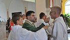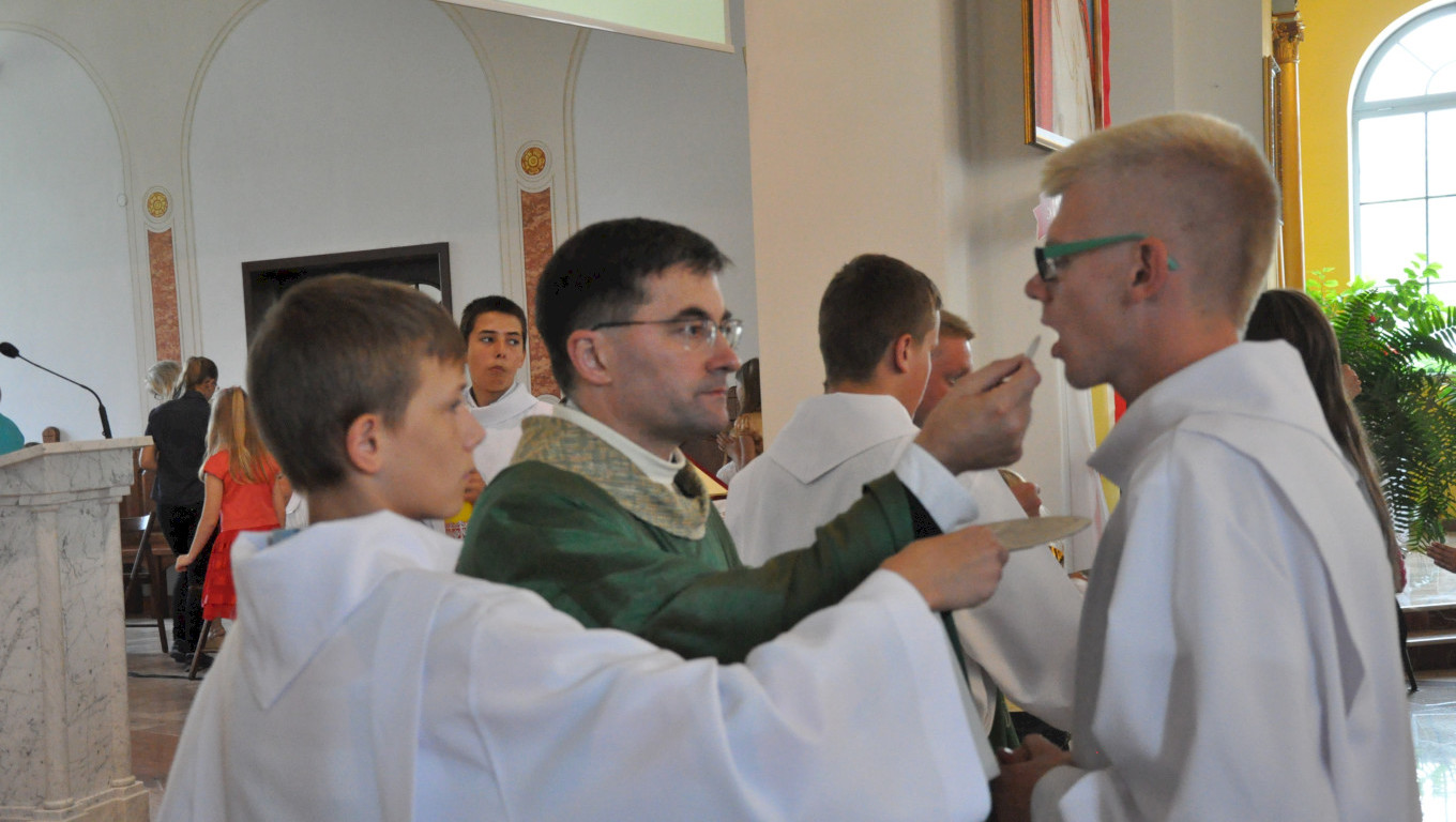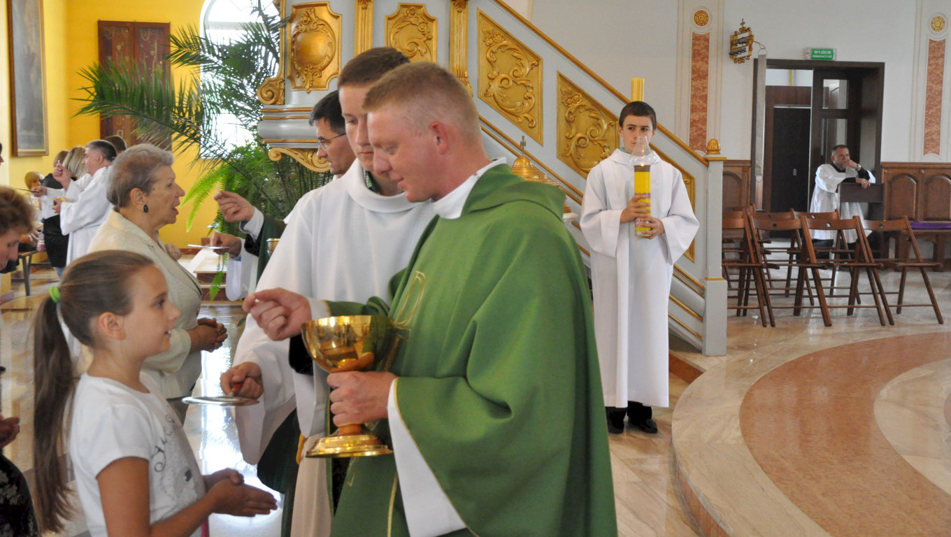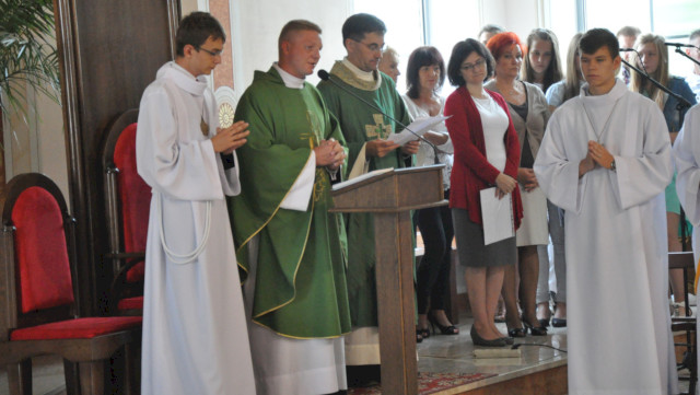 W niedzielę 31 sierpnia o godzinie 1030 powitaliśmy nowego wikariusza księdza Piotra Kępniaka, który odprawił pierwszą w naszym kościele Mszę Świętą. Ksiądz Piotr urodził się w Zduńskiej Woli a do nas przybył z parafii Podwyższenia Krzyża Świętego w Widawie, gdzie pracował 3 lata. Po Eucharystii przedstawiciele grup parafialnych przywitali nowego księdza wikariusza i życzyli błogosławieństwa Bożego na czas pracy u nas i na dalsze lata posługi kapłańskiej.