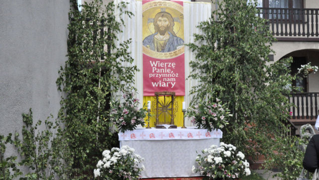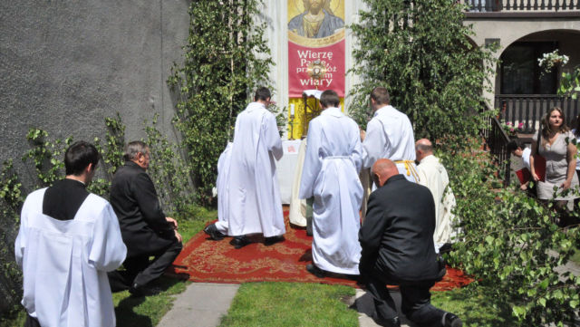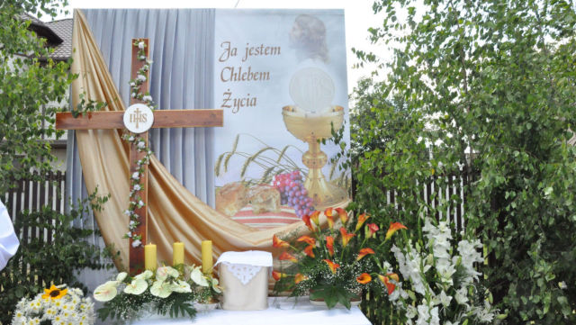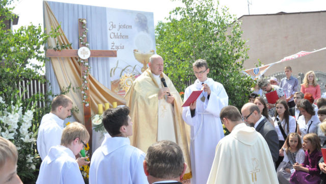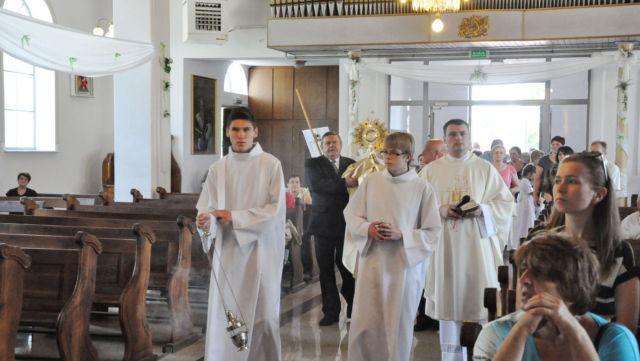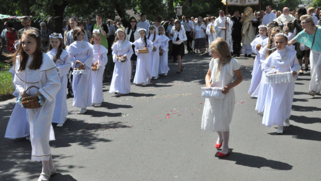 W czwartek 19 czerwca 2014 roku świętowaliśmy Uroczystość Najświętszego Ciała i Krwi Chrystusa czyli Boże Ciało. W polskiej tradycji jest to jedno z największych świąt. Jak co roku wyszliśmy z procesją do czterech ołtarzy, aby publicznie wyznać naszą wiarę i uczcić Chrystusa obecnego w Najświętszym Sakramencie.