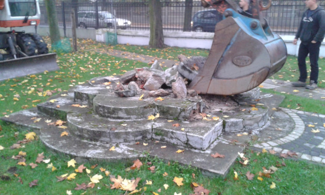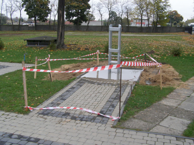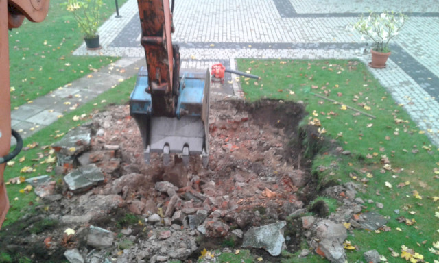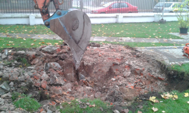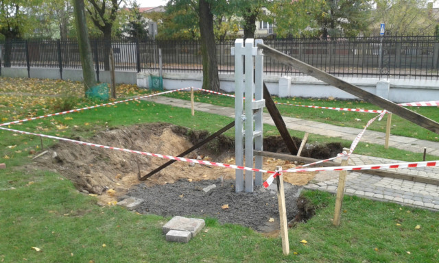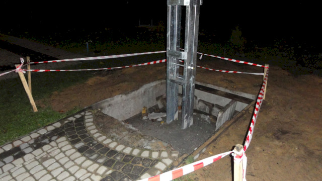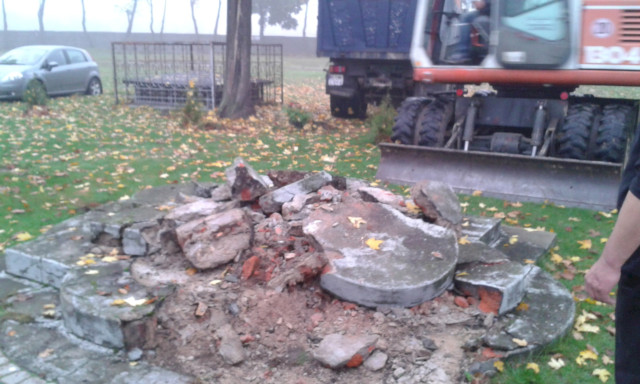 Po usunięcia starego krzyża przyszedł czas na rozbiórkę fundamentu.