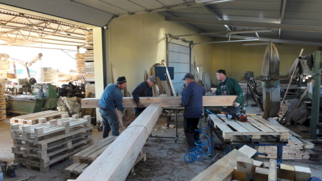 Obróbka w tartaku drewna pod nowy krzyż.