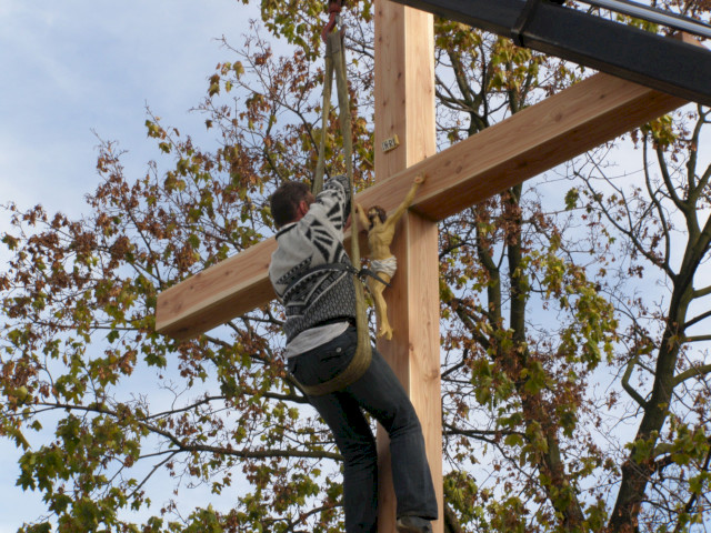 ...postawić krzyż i przymocować do stalowego uchwytu.