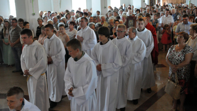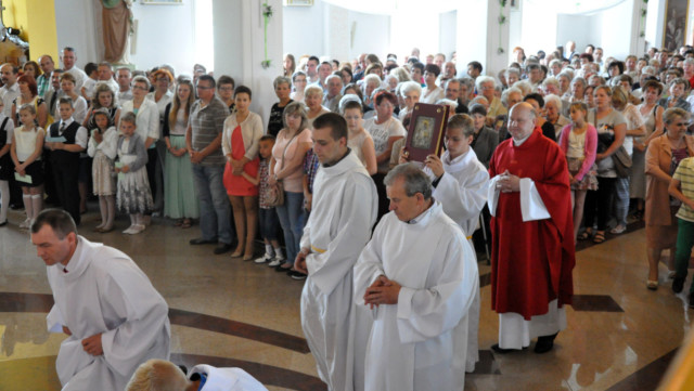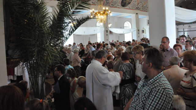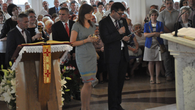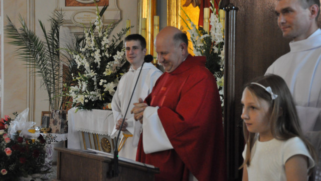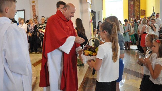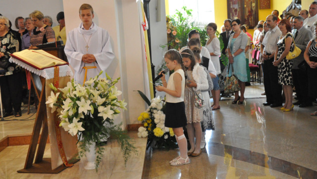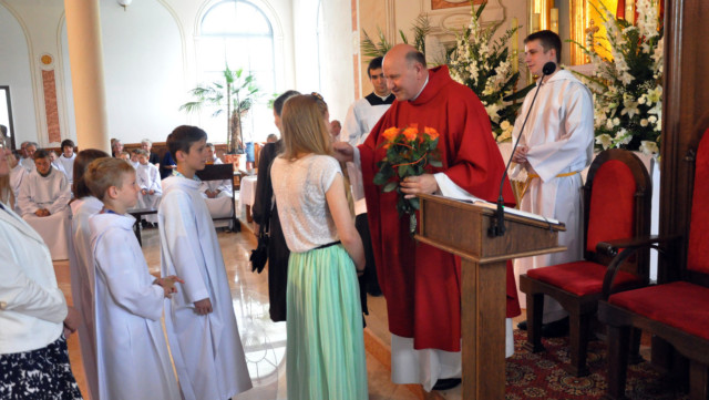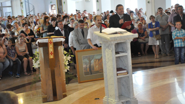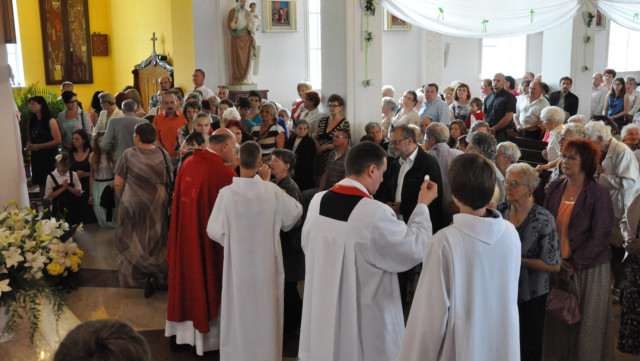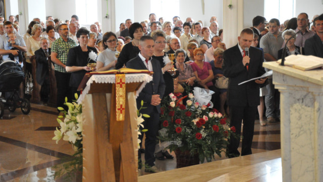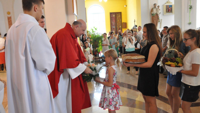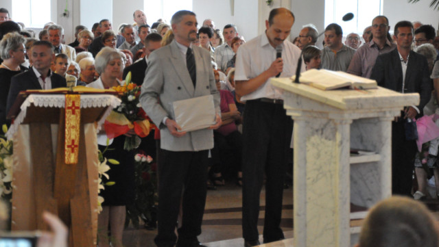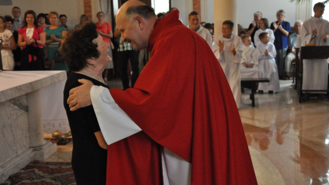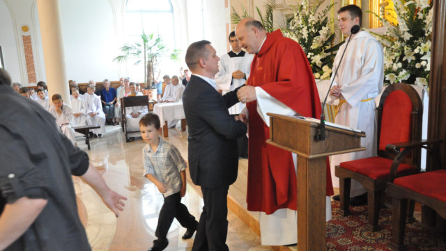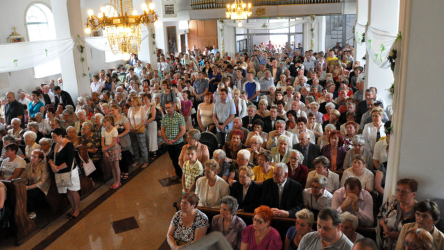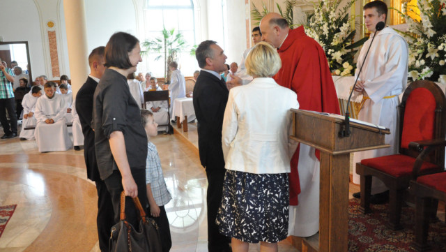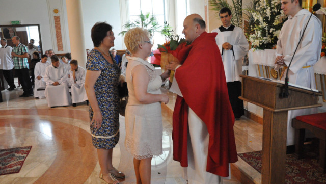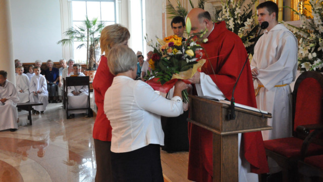 W niedzielę 29 czerwca 2014 roku o godzinie 1030 odbyła się Msza Święta, na której pożegnaliśmy księdza proboszcza Ryszarda Stanka odchodzącego do parafii św. Maksymiliana Kolbego w Pabianicach. Wypełniona po brzegi świątynia była żywym świadectwem zasług odchodzącego ks. Proboszcza wobec naszej wspólnoty parafialnej. Po Mszy przedstawiciele grup parafialnych złożyli podziękowania za wieloletnią pracę naszego kapłana.