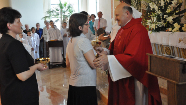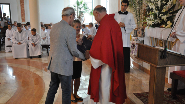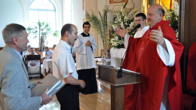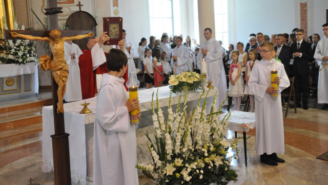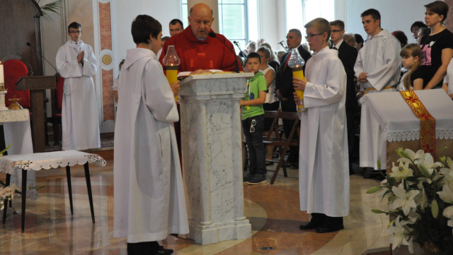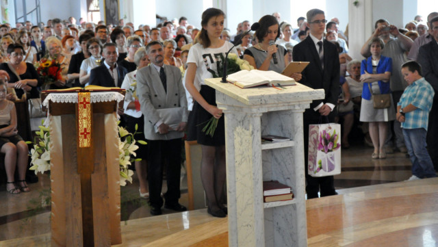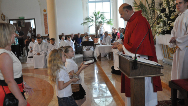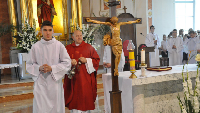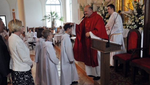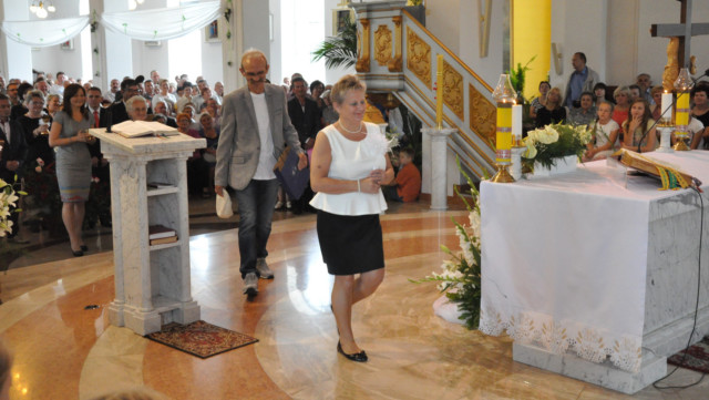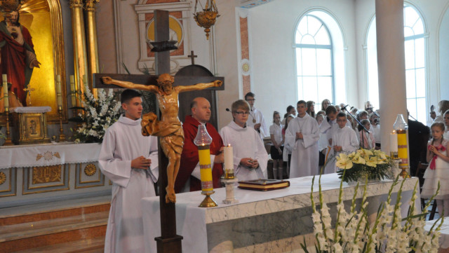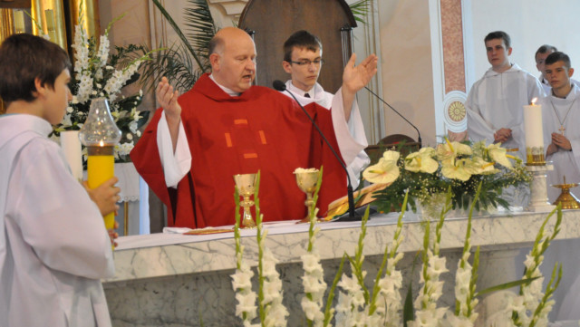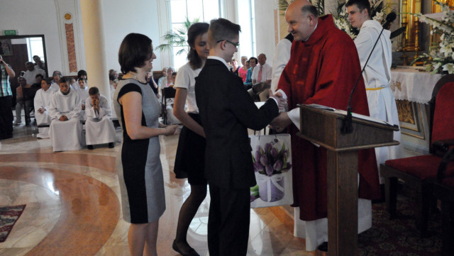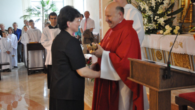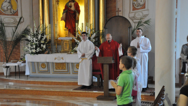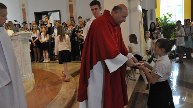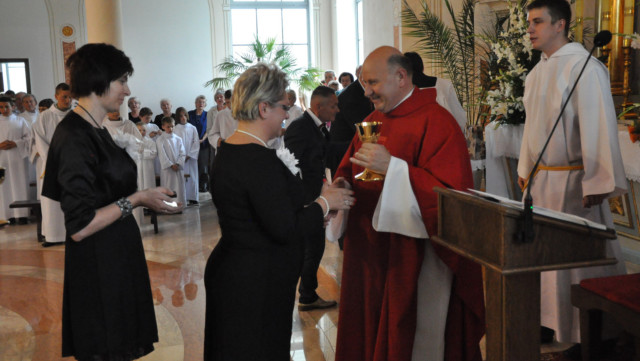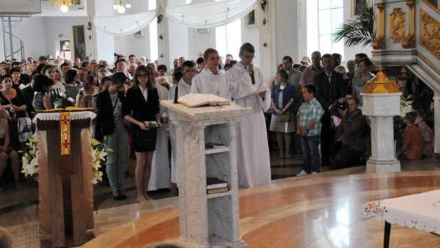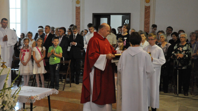 W niedzielę 29 czerwca 2014 roku o godzinie 1030 odbyła się Msza Święta, na której pożegnaliśmy księdza proboszcza Ryszarda Stanka odchodzącego do parafii św. Maksymiliana Kolbego w Pabianicach. Wypełniona po brzegi świątynia była żywym świadectwem zasług odchodzącego ks. Proboszcza wobec naszej wspólnoty parafialnej. Po Mszy przedstawiciele grup parafialnych złożyli podziękowania za wieloletnią pracę naszego kapłana.