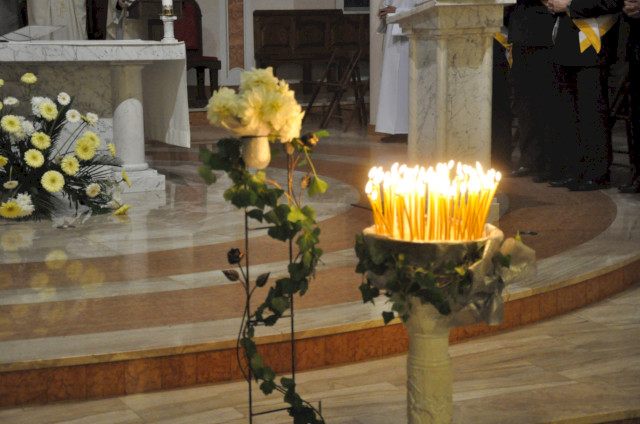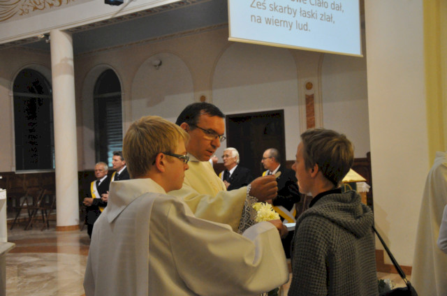 Bóg jest hojnym dawcą i wszystko cokolwiek nam daje powinniśmy przyjmować z wiarą - tymi słowami rozpoczął homilię ksiądz Robert. To wiara w Chrystusa Zmartwychwstałego nas tutaj gromadzi. Pod koniec życia kiedy będziemy odchodzili, wtedy usłyszymy słowa Zbawiciela - liczy się tylko miłość. A żałoba, którą przeżywamy to cena za miłość. To wiara sprawia, że nawet w tych trudnych doświadczeniach, kiedy po ludzku wydaje się, że świat się kończy, stajemy dzisiaj przed Chrystusem.. Na najbardziej dotykające każdego kogo dotknęła śmierć bliskiej osoby pytanie - dlaczego? - znajdziemy odpowiedź dopiero w chwili własnej śmierci, kiedy stając przed Bogiem otrzymamy odpowiedzi na wszystkie nasze pytania. Jednak to wiara sprawia - kontynuował ksiądz - że stajemy przed ołtarzem, by złożyć Panu Bogu to co najcenniejsze - doświadczenie bycia rodzicem. Jak to jest kiedy odchodzi dziecko? Ważne jest to, by nie pomijać Bożej Miłości, aby ofiarować Bogu swoje serce przepełnione żalem, czasem też gniewem na Pana Boga za Jego decyzję o odejściu ukochanej osoby. Jest to okazja, aby przemieniać swoje serce na wzór hostii, która staje się podczas Przeistoczenia Ciałem Jezusa. Okazją, by zmienić swoje serce Mocą Bożą, doświadczeniem przebaczenia i miłości, którą On pragnie nas obdarować. Dlatego - zachęcał zgromadzonych w świątyni ksiądz Robert - zechciejmy Bogu powiedzieć przed przyjęciem Komunii świętej: Panie Ty wiesz, że jestem grzeszny, ale powiedz tylko jedno słowo, a dusza moja i moje serce i moje myśli z Twoją pomocą będą uzdrowione.
