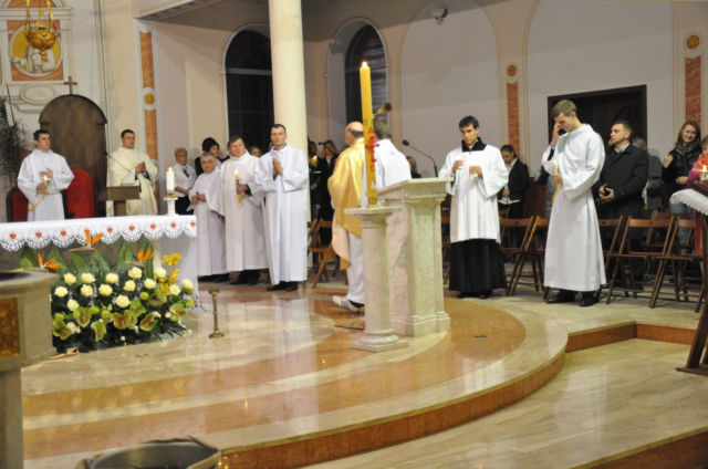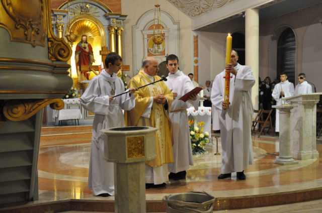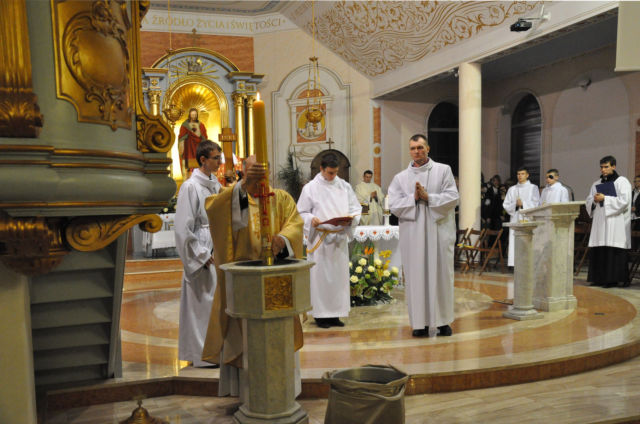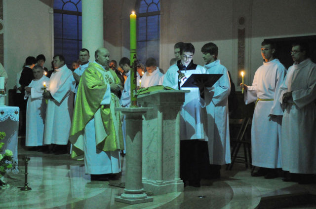 Kolejną częscią liturgii jest Liturgia Słowa, która poprzez cykl czytań przeplatanych psalmami ukazuje historię zbawienia ludzkości. Następna część przynosi poświęcenie wody, która jest symbolem życia i śmierci a która cały rok będzie slużyć głównie do chrztu. Kapłan uświęca wodę poprzez zanurzenie w niej paschału. Następuje odnowienie przyrzeczeń chrzcielnych i pokropienie wiernych nowopoświęconą wodą.