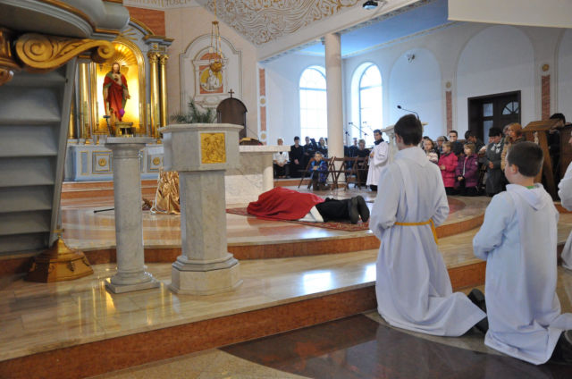 Liturgia wielkopiątkowa rozpoczyna się odczytaniem Męki Pańskiej. Nastepnie w czasie uroczystej modlitwy wstawienniczej w dziesięciu wezwaniach modlitwy powszechnej prosimy Boga o opiekę dla całego świata.