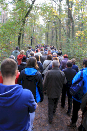 Wszyscy rozpoczęliśmy wspólną modlitwą oraz śpiewem. Wysłuchaliśmy życiorysu bł. Karoliny, wywarło to na nas ogromne wrażenie. O godzinie 15 wzięliśmy udział w drodze krzyżowej śladami męczeństwa bł. Karoliny, która prowadziła do miejsca, gdzie poniosła męczeńską śmierć.