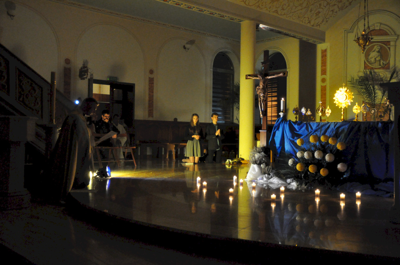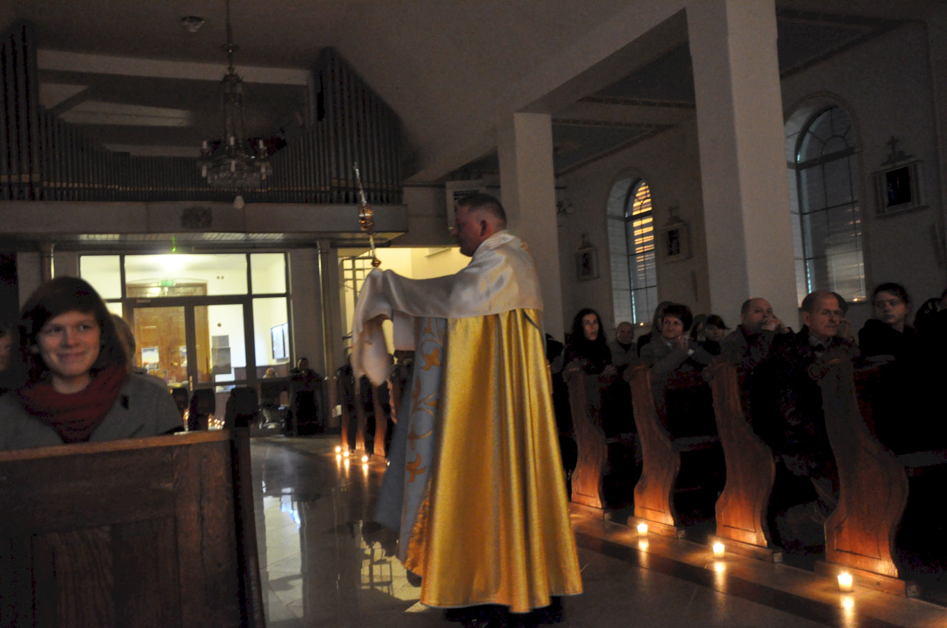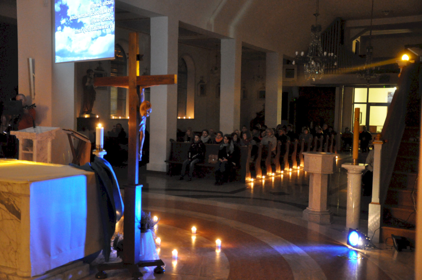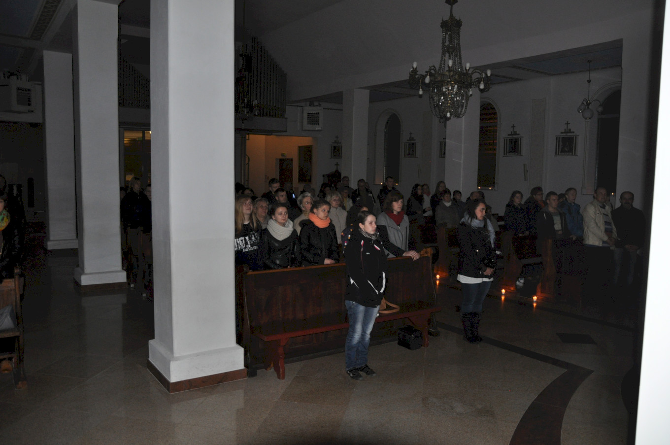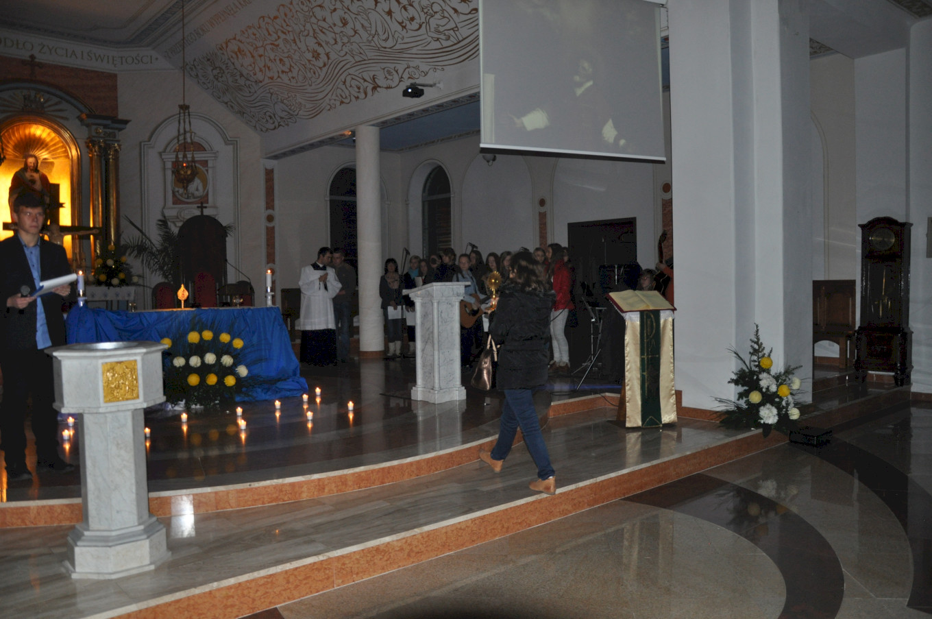 Po wieczornej Eucharystii młodzież przygotowała świątynię oświetlając ją jedynie blaskiem świec. Na Noc Świętych przybyli nie tylko nasi parafianie, ale i goście z innych parafii. Uroczystość poprzedziła prezentacja multimedialna obejmująca gregoriański śpiew łacińskiej wersji Litanii do Wszystkich Świętych ilustrowany obrazami przedstawiającymi kolejne postacie z tej litanii.