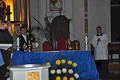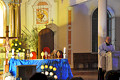 Młodzi przedstawiciele naszej parafii prezentowali postacie 21 świętych i błogosławionych, których relikwie udało się sprowadzić na tę szczególną noc. W tym czasie reprezentanci młodzieży uroczyście zanosili ozdobne relikwiarze na ołtarz.