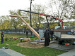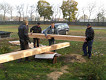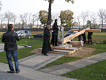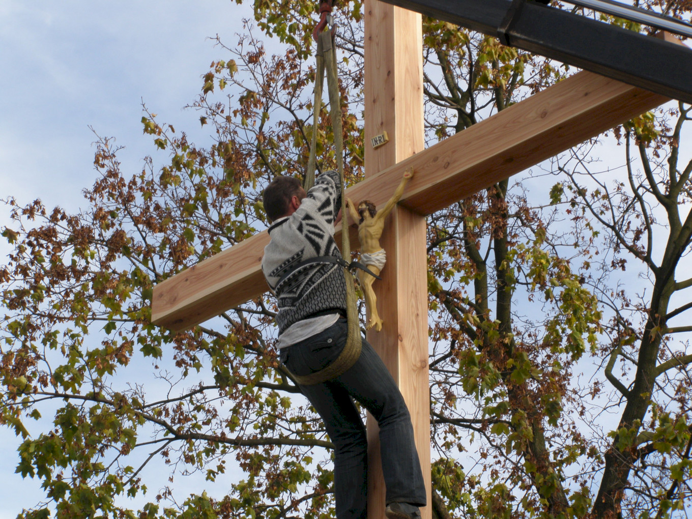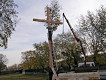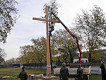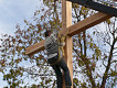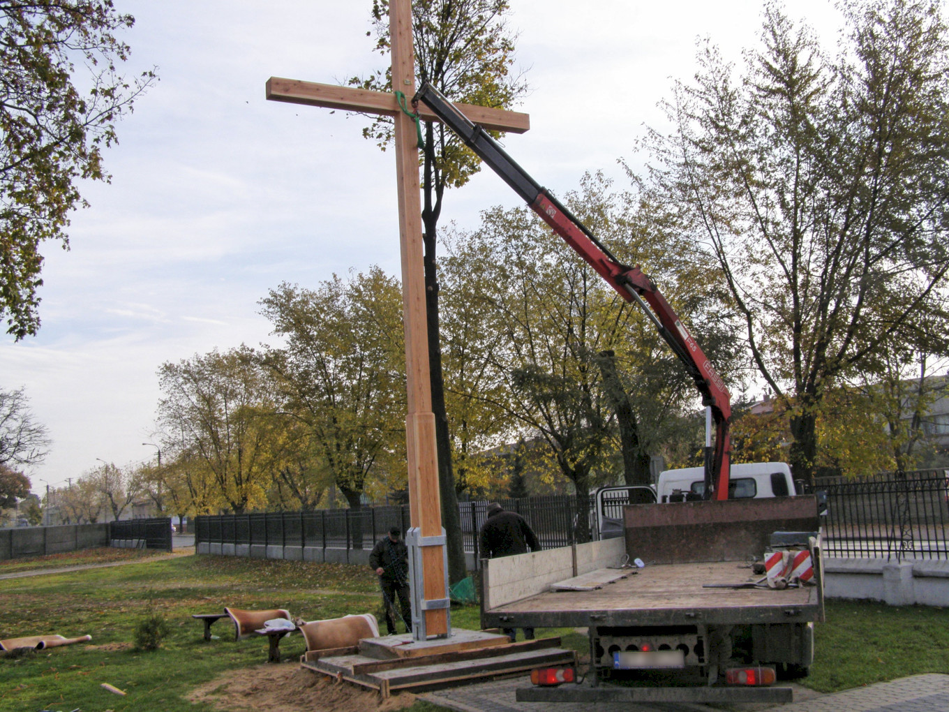 Zdjęcia poniżej przedstawiają poszczególne etapy: obróbki drewna, przygotowań fundamentu i stalowego uchwytu oraz postawienia drzewa krzyża.