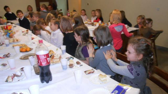 Po podzieleniu sie opłatkiem czas upłynął przy śpiewaniu pięknych kolęd przy akompaniamencie gitary oraz na wspólnych rozmowach. Rodzice wraz z Fundacją N.S.J. - Rodzina przygotowali słodki poczęstunek.