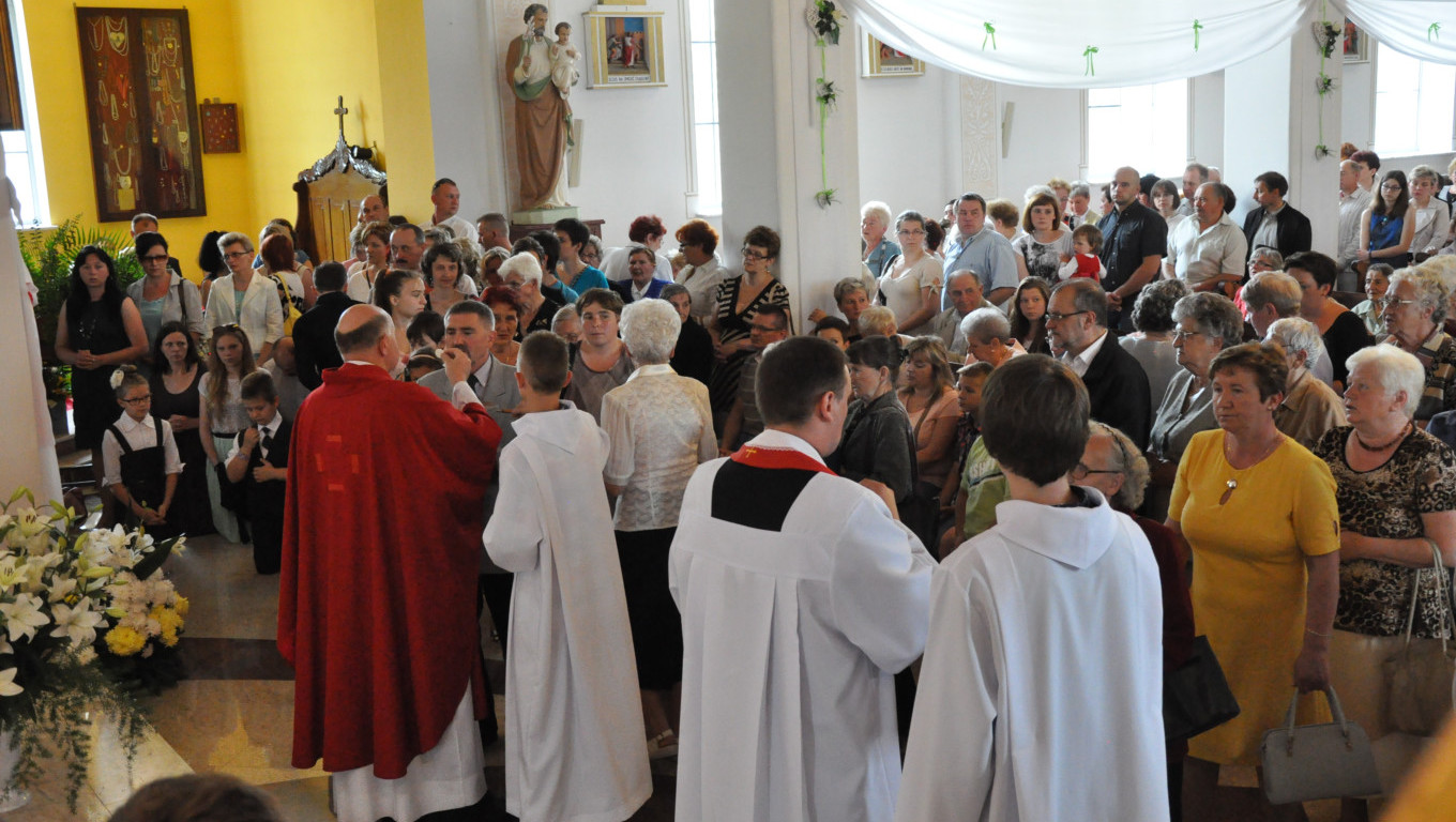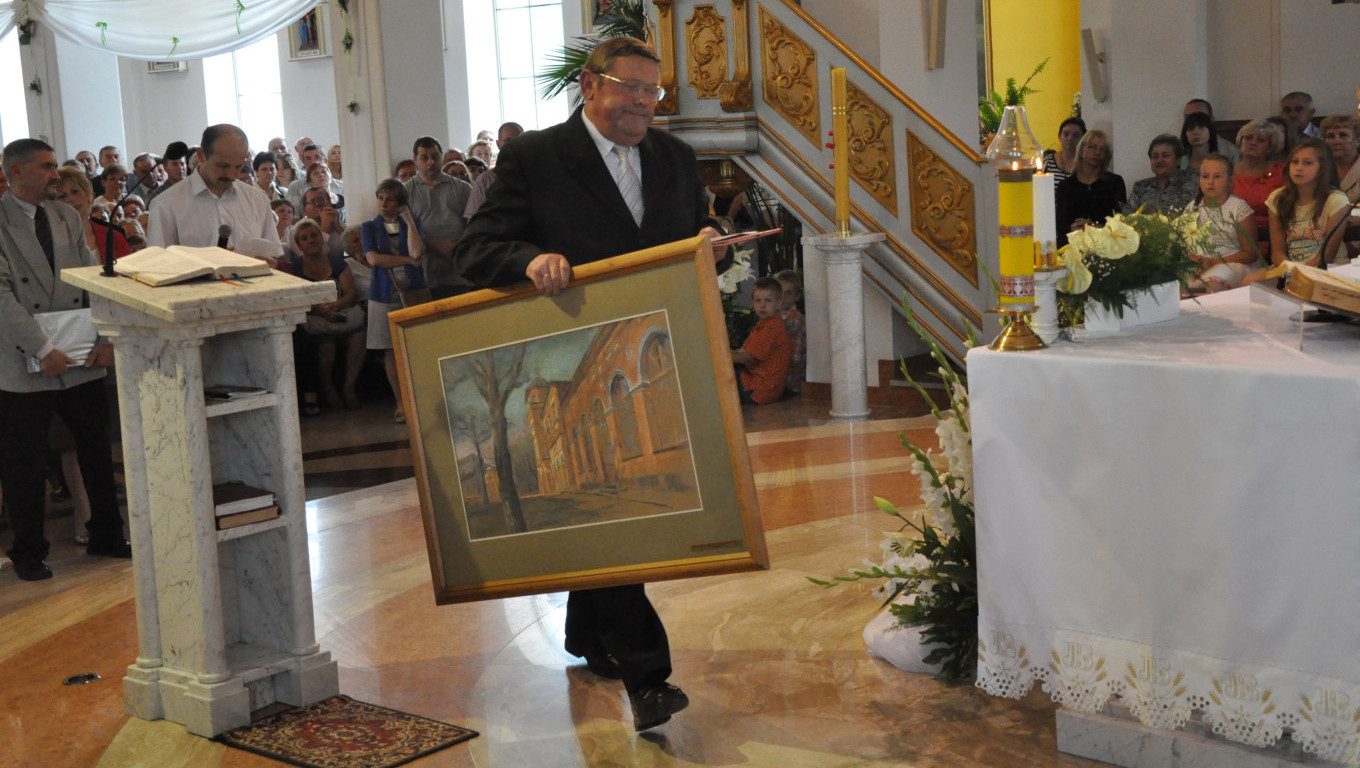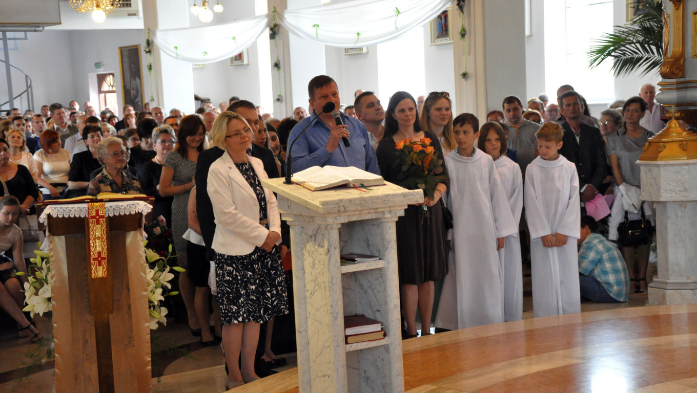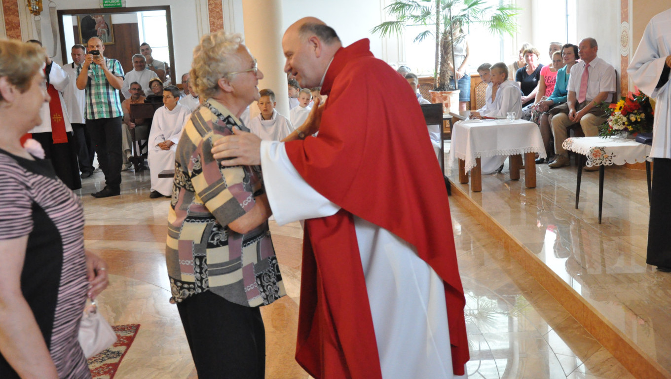 W niedzielę 29 czerwca 2014 roku o godzinie 1030 odbyła się Msza Święta, na której pożegnaliśmy księdza proboszcza Ryszarda Stanka odchodzącego do parafii św. Maksymiliana Kolbego w Pabianicach. Wypełniona po brzegi świątynia była żywym świadectwem zasług odchodzącego ks. Proboszcza wobec naszej wspólnoty parafialnej. Po Mszy przedstawiciele grup parafialnych złożyli podziękowania za wieloletnią pracę naszego kapłana.