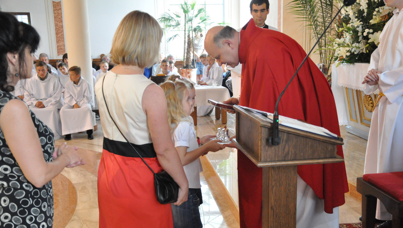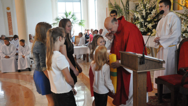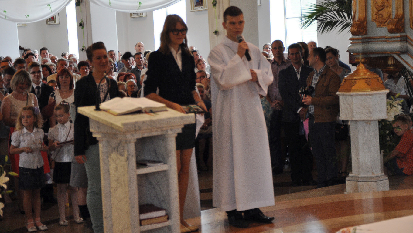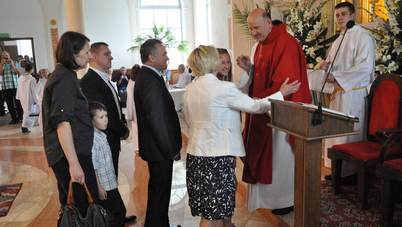 W niedzielę 29 czerwca 2014 roku o godzinie 1030 odbyła się Msza Święta, na której pożegnaliśmy księdza proboszcza Ryszarda Stanka odchodzącego do parafii św. Maksymiliana Kolbego w Pabianicach. Wypełniona po brzegi świątynia była żywym świadectwem zasług odchodzącego ks. Proboszcza wobec naszej wspólnoty parafialnej. Po Mszy przedstawiciele grup parafialnych złożyli podziękowania za wieloletnią pracę naszego kapłana.