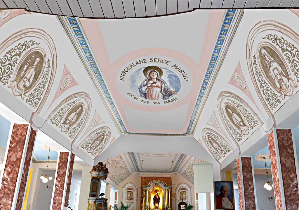 Jutro czyli 11 sierpnia zaczynamy malowanie polichromii nawy głównej w postaci medalionu z wizerunkiem Niepokalanego Serca NMP wg projektu p. Agnieszki Szewczyk.