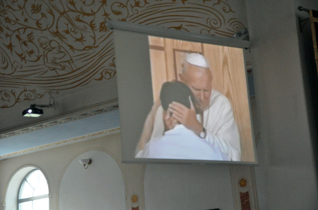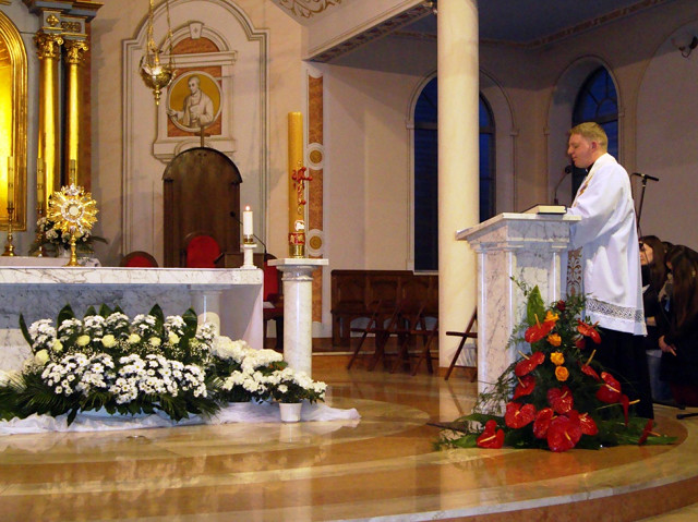 Aby uczcić zbliżającą się pierwszą rocznicę kanonizacji papieża Jana Pawła II grupa młodzieżowa przygotowała w niedzielę, 19 kwietnia, adorację Pana Jezusa obecnego w Najświętszym Sakramencie.
