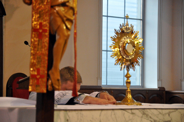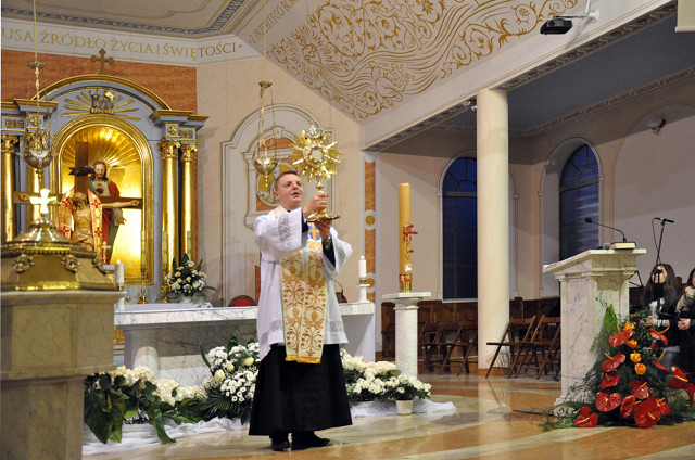 Przed adoracją była Eucharystia, podczas której był wystawiony kielich używany przez naszego papieża oraz ornat, w którym wielokrotnie odprawiał Mszę Świętą.
