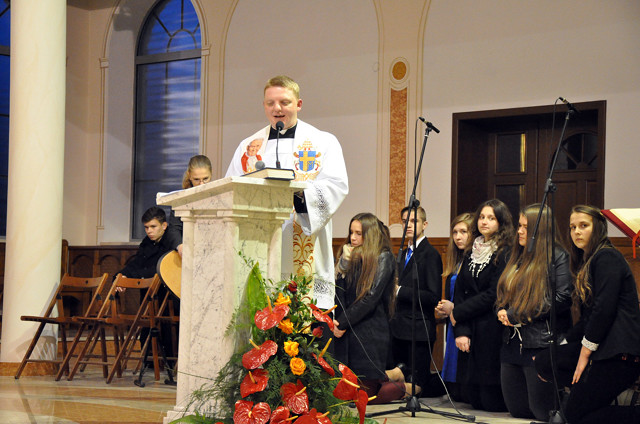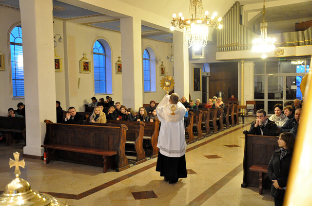 Błogosławieństwo zakończyło adorację, ludzie zgromadzeni w kościele nagrodzili brawami naszą młodzież za jej wkład w przygotowanie adoracji oraz księdza Piotra za pomoc i opiekę nad naszymi młodymi parafianami.