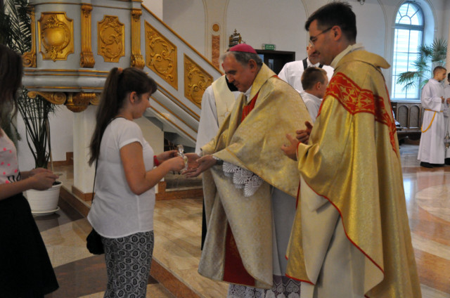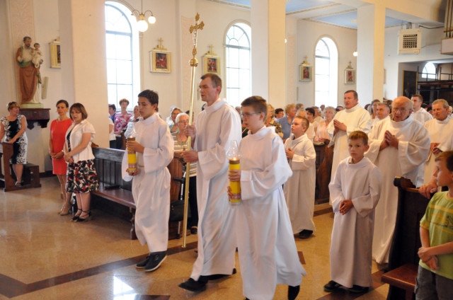 Jak co roku uroczystą Mszę Świętą o godzinie 1800 odprawił i kazanie wygłosił pochodzący z naszej parafii ks. biskup Ireneusz Pękalski. Do naszej parafii zaproszono wielu kapłanów z naszego dekanatu. Homilia wygłoszona przez ks. biskupa poświęcona była Bożemu Miłosierdziu. Po Eucharystii licznie zgromadzeni wierni w naszej świątynii wzięli udział w procesji wokół kościoła.