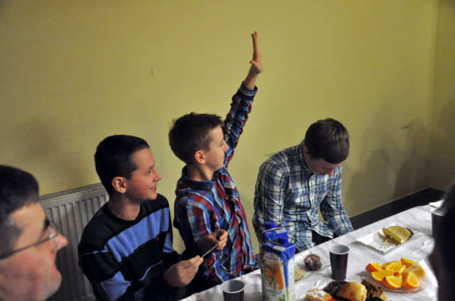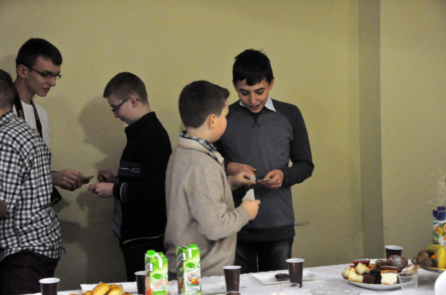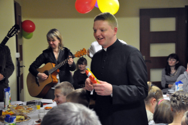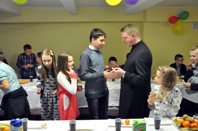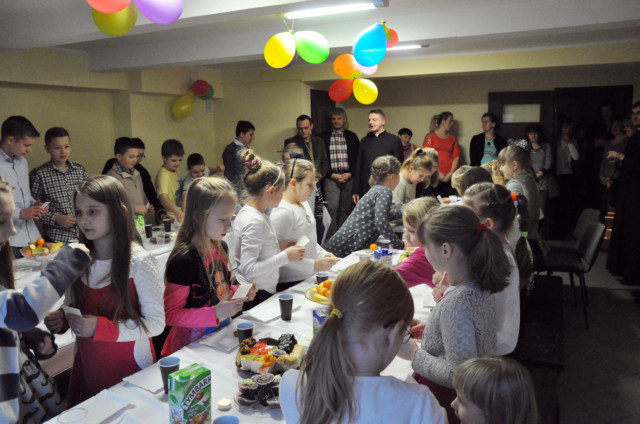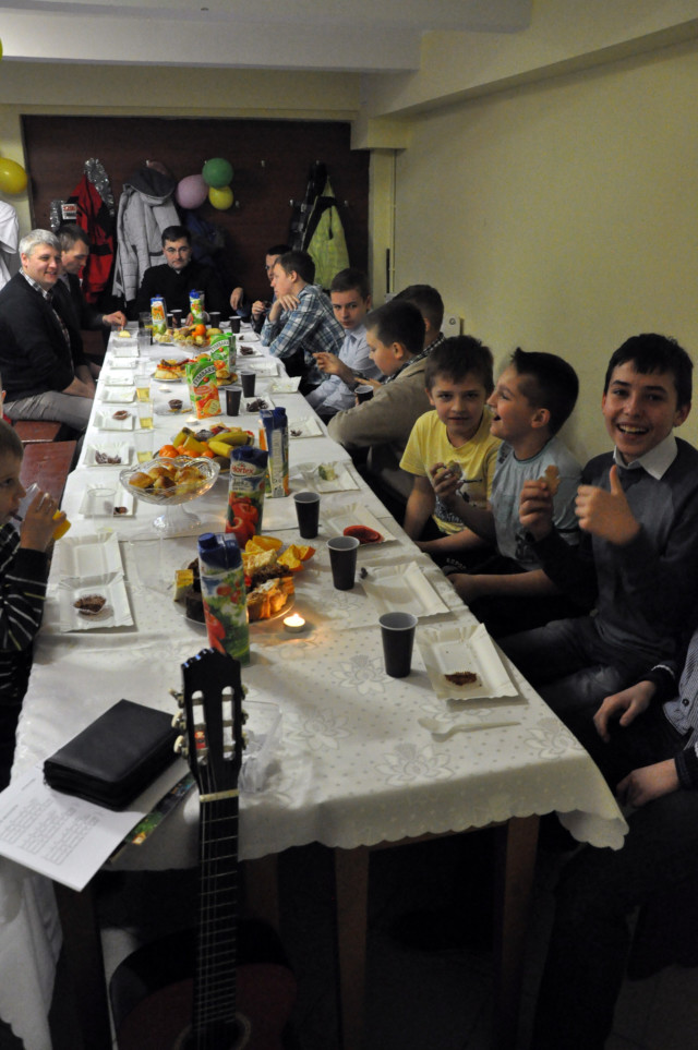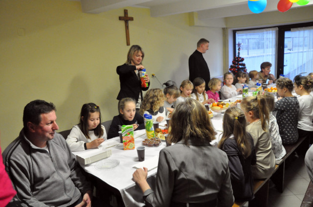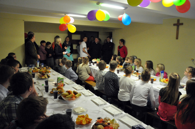 Po podzieleniu sie opłatkiem czas upłynął przy śpiewaniu pięknych kolęd przy akompaniamencie gitary oraz na wspólnych rozmowach. Wiele emocji wzbudził konkurs z wiedzy religijnej ze słodkimi nagrodami.