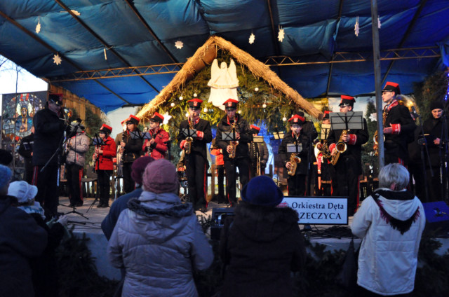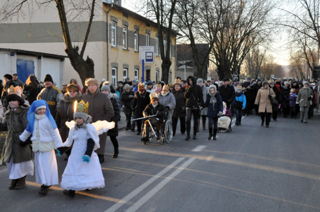 Z parafii: św. Jadwigi Królowej, NMP Królowej Polski i Św. Rodziny wyruszyły trzy orszaki, by zgromadzić się przed sceną w naszej parafii i oddać pokłon Dzieciątku. Licznie zgromadzeni ludzie obejrzeli występ dziecięcego zespołu ludowego Mali Rzeczycanie, scenkę o tradycjach kolędowych w wykonaniu tego samego zespołu, scenę u Heroda oraz występ orkiestry dętej z Rzeczycy.