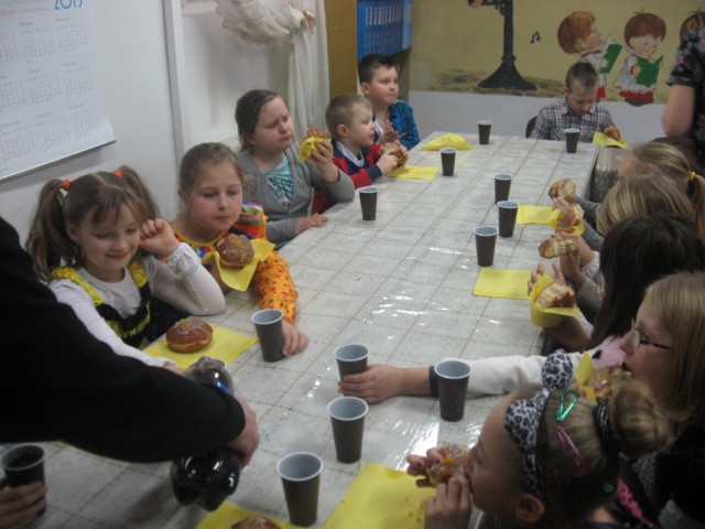 W dniach 9 - 13 lutego br. dzięki wsparciu Fundacji N.S.J. - Rodzina zorganizowaliśmy dla grupy 33 dzieci niezapomniane półkolonie zimowe, które w tym roku przebiegały pod hasłem W świecie baśni. Nikt nie mógł narzekać na nudę, a uśmiech nie znikał z dziecięcych twarzyczek! Pierwszego dnia zaprosiliśmy uroczą i rozśpiewaną grupę na całodniową wycieczkę autokarową do Łodzi, gdzie też zwiedzałiśmy tamtejsze Planetarium, a także łódzką Archikatedrę. Drugi dzień to wizyta w tomaszowskim komisariacie Policji. Trzeciego dnia wyruszyliśmy w poszukiwaniu książkowych wrażeń do Miejskiej Biblioteki Publicznej - Odział Dla Dzieci i Młodzieży, zaś następnie bawiliśmy się z zaprzyjaźnionymi harcerzami z tomaszowskiego Hufca ZHP (to właśnie dzięki harcerzom mamy swój półkolonijny, muzyczny hit - Plastelinę). Dzień czwarty, jak na Tłusty Czwartek przystało, obfitował w : energetyczne tańce, konkursy, malowanie buziek, a przede wszystkim w... słodkie łakocie!!! Ostatni dzień naszych parafialnych półkolonii to zajęcia profilaktyczne niezwykle ciekawie przeprowadzone przez p. Dorotę Ignasiak - pracownika Powiatowej Stacji Sanitarno - Epidemiologicznej w Tomaszowie Mazowieckim oraz p. pielęgniarkę Ewę Dworak z tomaszowskiej Poradni Mirmed.