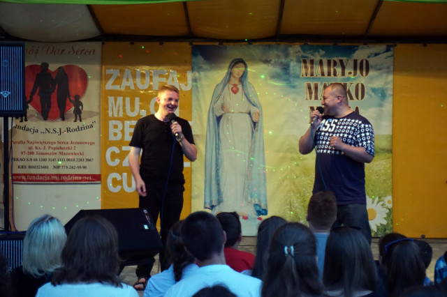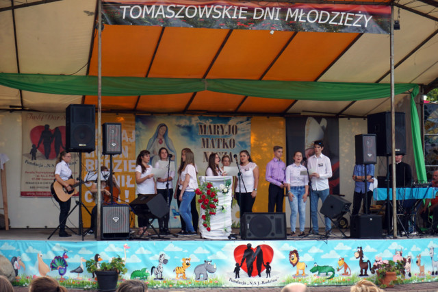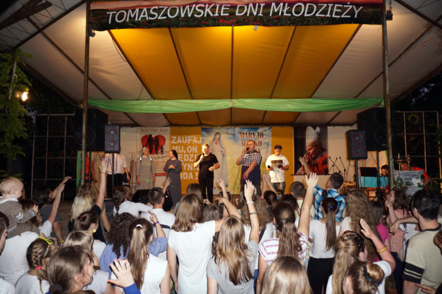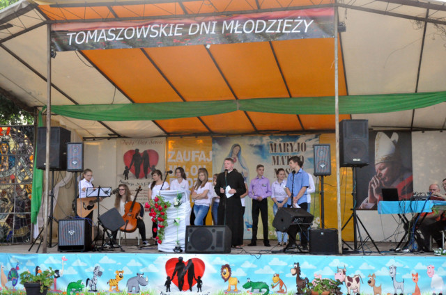 W niedzielny wieczór, 14 czerwca, odbyły I Tomaszowskie Dni Młodzieży. Na występy do naszej parafii przyjechali znani wykonawcy chrześcijańskiego rapu - Piotr Plichta Poison, który dał również świadectwo swojego nawrócenia oraz Bęsiu i DJ Yonas. Swoje świadectwa przedstawili również Mieczysław Nowicki - wielokrotnie nagradzany kolarz oraz Wiesław Rudkowski - mistrz Europy w 1975 r. w boksie. Nie zabrakło oczywiście naszej młodzieżowej scholi, która zaprezentowała swoje utwory oraz tańców lednickich, które bardzo spodobały się młodzieży zgromadzonej przy scenie.