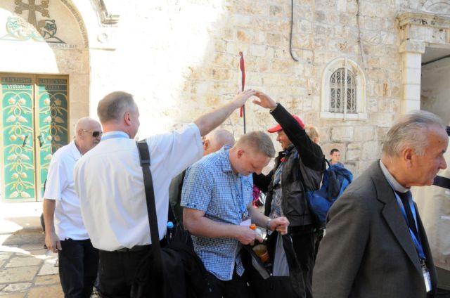 Błogosławieństwo w Bazylice Grobu Pańskiego przy Kamieniu Namaszczenia