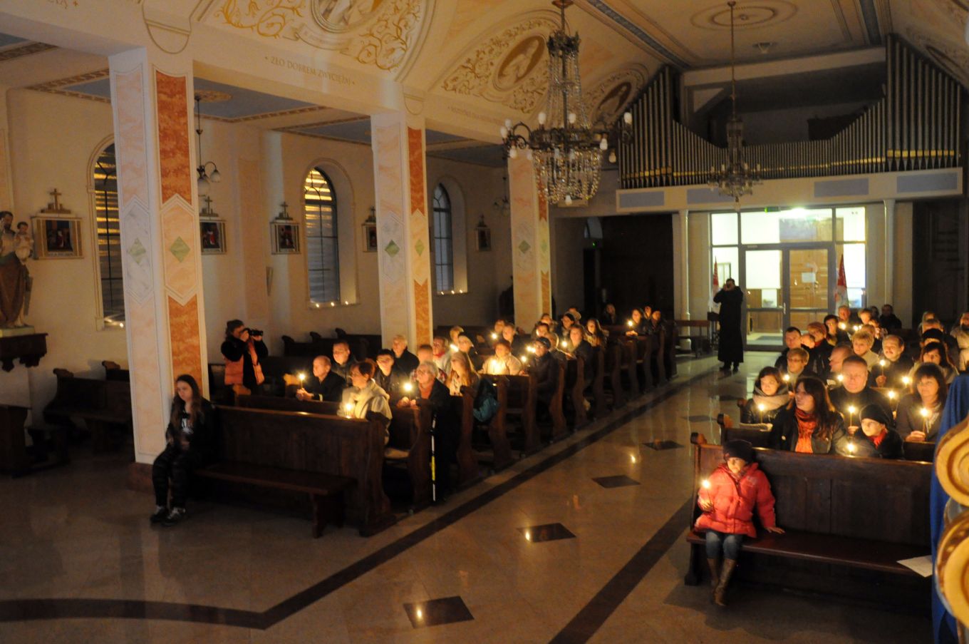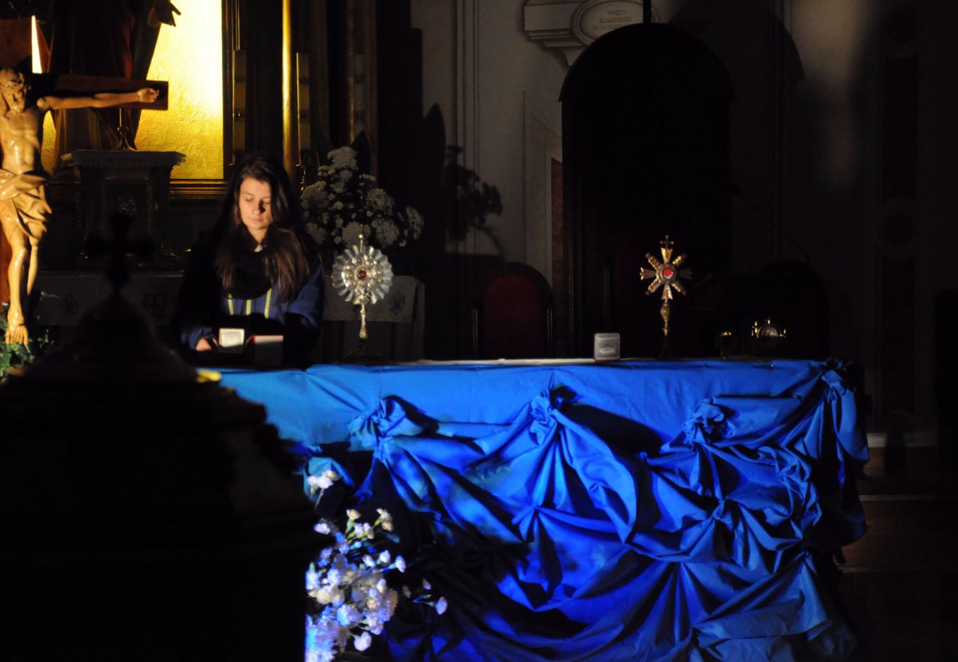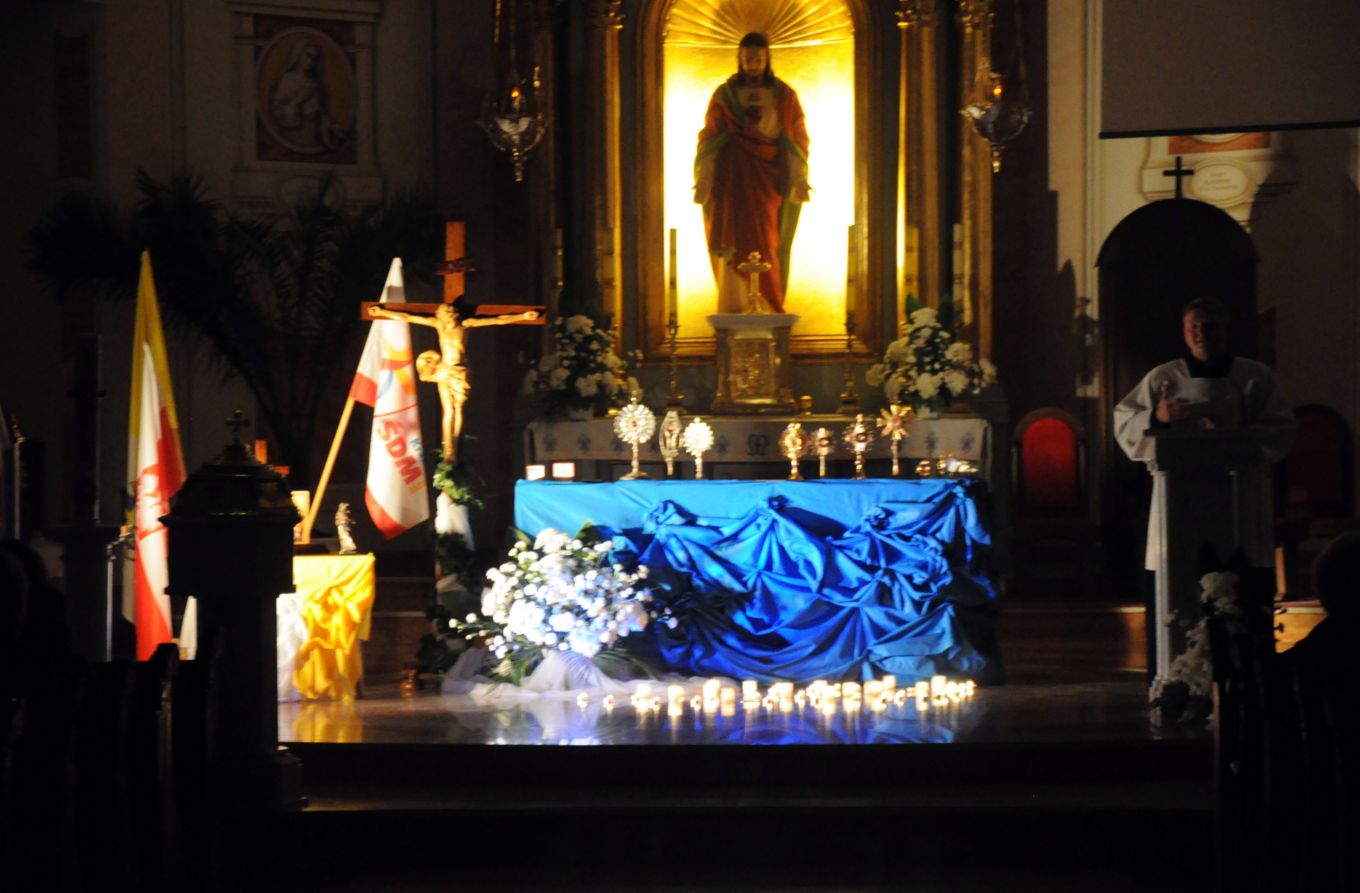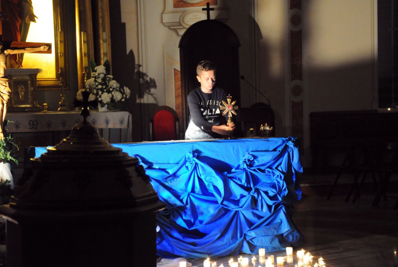 Okolicznościowe kazanie ks. Piotra Stępnia, litania do Wszystkich Świętych oraz przejście główną nawą naszego wikariusza z Monstrancją to kolejne elementy programu tej szczególnej nocy. Tą część uroczystości zakończyło błogosławieństwo Najświętszym Sakramentem.