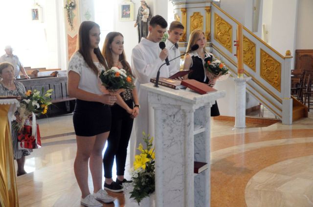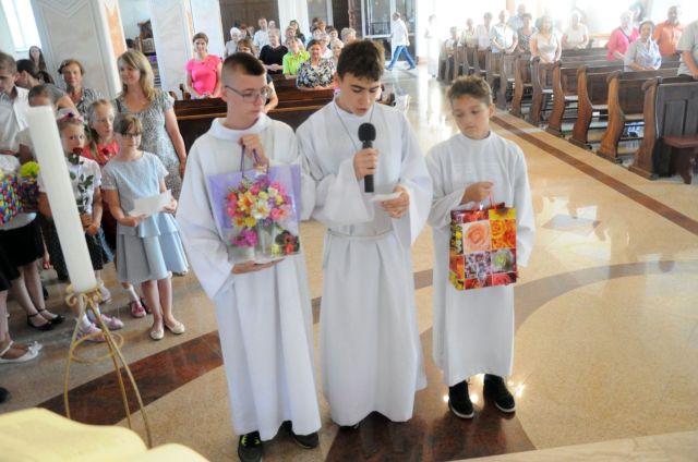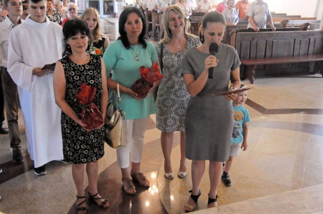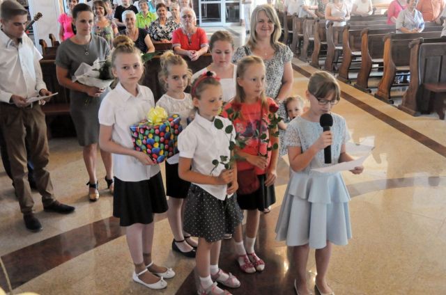 Przed końcem Mszy przedstawiciele grup parafialnych złożyli życzenia i podziękowali za dwa lata pracy w naszej parafii.