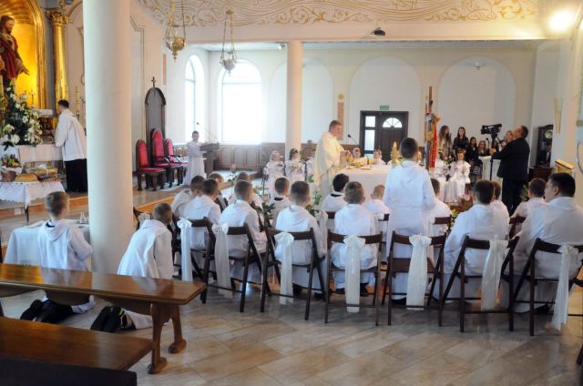 Ósmego maja br. dzieci z naszej parafii po raz pierwszy przyjęły Pana Jezusa i w pełni uczestniczyły w Ofierze Mszy Świętej.