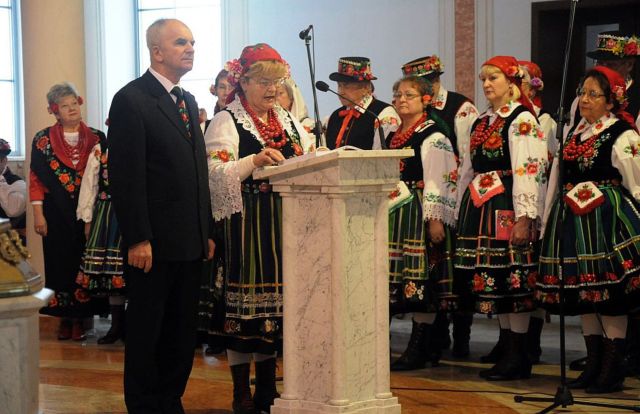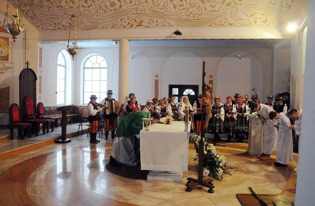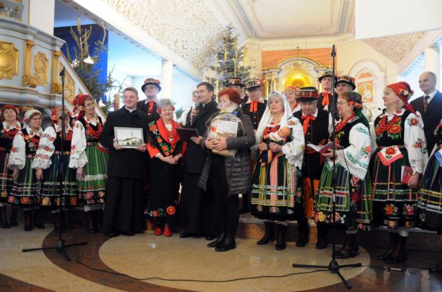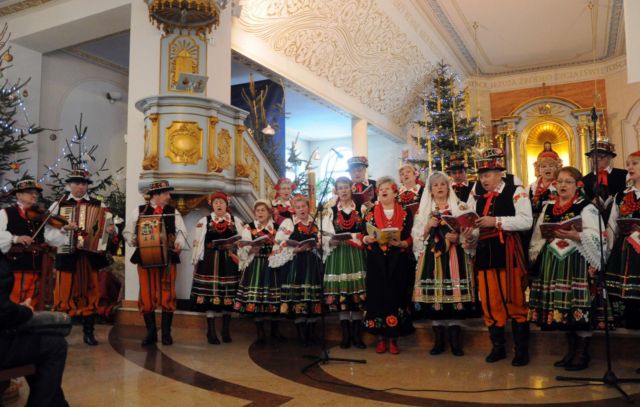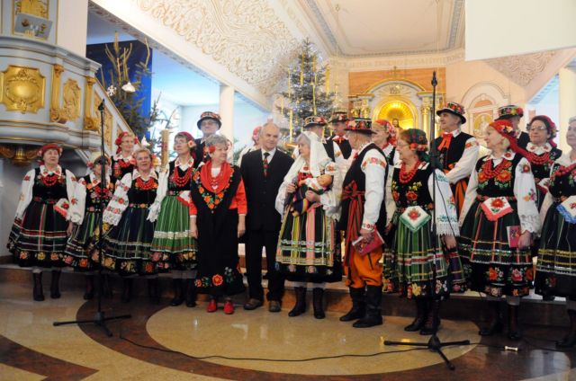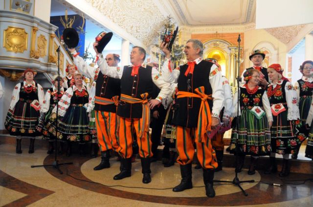 W minioną niedzielę (17 stycznia) gościliśmy w naszym kościele kapelą ludową "Ustronie". Ów liczący 24 osoby zespół folklorystyczny funkcjonuje pod patronatem Miejskiego Ośrodka Kultury w Skierniewicach. Powstał w 2007 roku przy Klubie Seniora na "Widoku". Tak przedstawia się na swojej stronie internetowej: