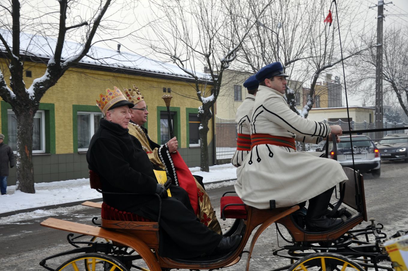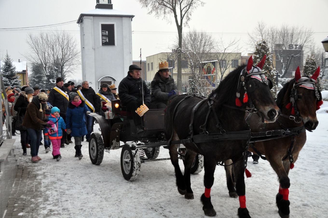 Powróćmy jednak z tej dalekiej wyprawy w czasie i przestrzeni do naszej parafii i współczesności. Liturgiczne obchody uroczystości od kilku lat uzupełniają barwne korowody przemierzające wiele miast w Polsce, a coraz częściej również poza jej granicami. Pierwszy orszak wyruszył na ulice Warszawy w 2009 roku i był rozszerzeniem inicjatywy, jaka pojawiła się w szkole „Żagle” prowadzonej przez Stowarzyszenie „Sternik”. Więcej na temat historii orszaku można przeczytać tutaj.