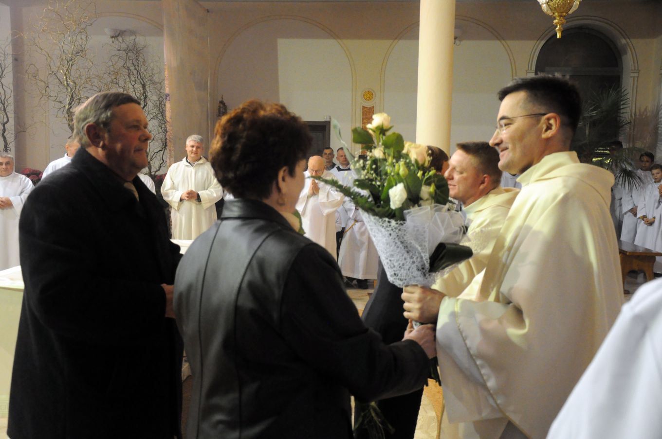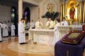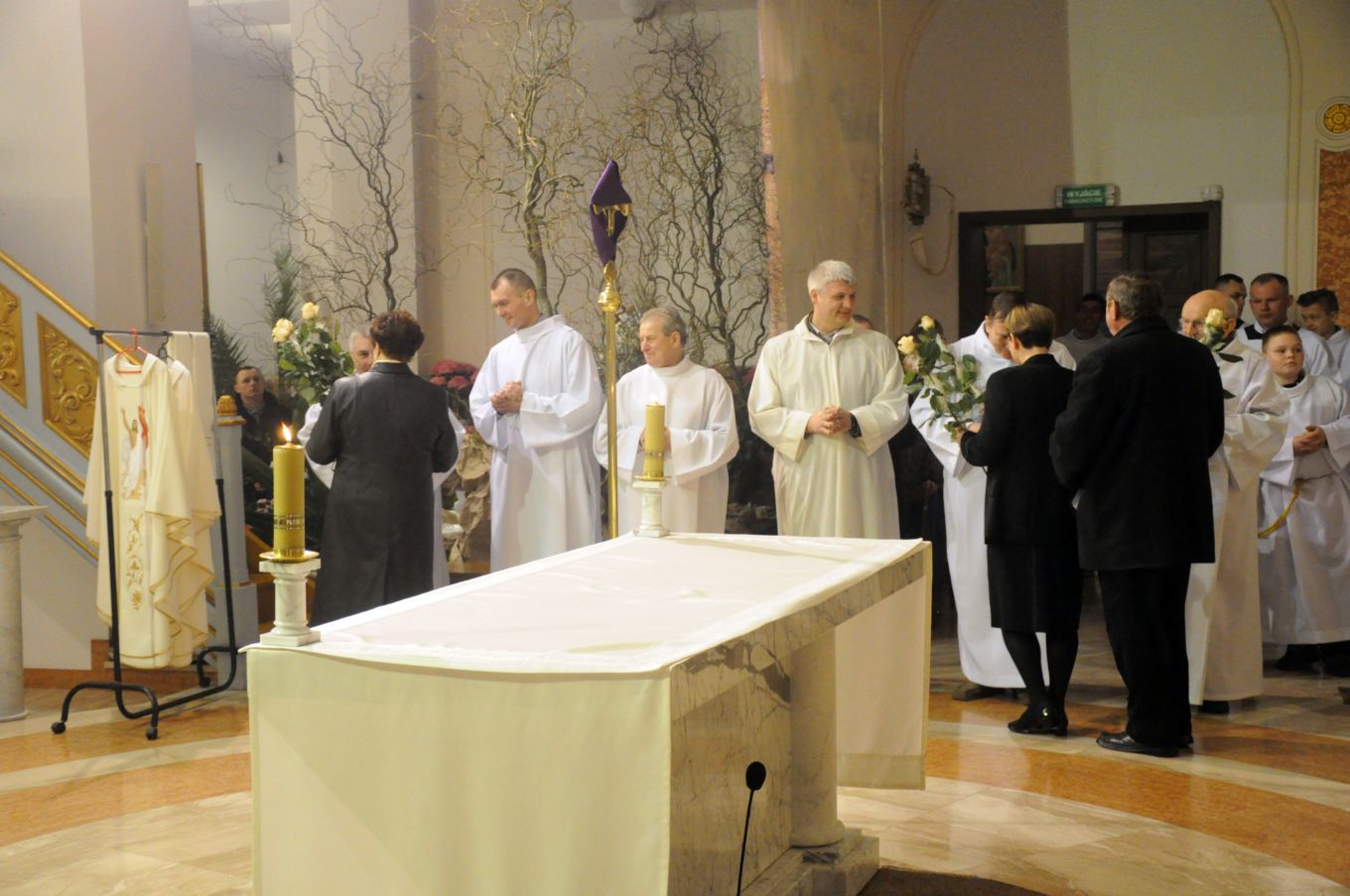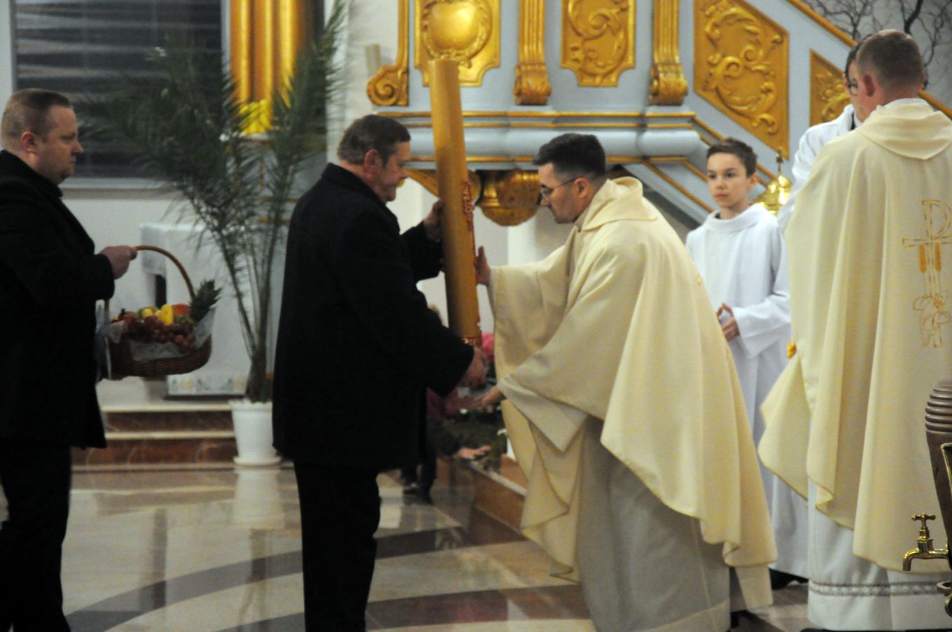 W Wielki Czwartek we wspólnotach parafialnych sprawuje się tylko jedną Eucharystię - wieczorem, tzw. Mszę Wieczerzy Pańskiej. W naszej parafii ta Msza św. odprawiana jest o godz. 1800. Jedynie w kościołach katedralnych przez południem odprawiana jest Msza Krzyżma świętego, na której gromadzą się kapłani danej diecezji, by pod przewodnictwem swojego biskupa odnowić święcenia kapłańskie i poświęcić święte oleje, używane podczas sakramentów w ciągu całego roku. Wraz z Modlitwą popołudniową kończy się okres Wielkiego Postu. Mszą Wieczerzy Pańskiej, Kościół rozpoczyna Triduum Paschalne. Wspomina ona tę ostatnią wieczerzę, w czasie której Pan Jezus tej nocy, której był wydany, umiłowawszy aż do końca swoich, którzy byli na świecie, ofiarował Bogu Ojcu swoje Ciało i Krew pod postaciami chleba i wina, i dał Apostołom, aby spożywali, polecił również im oraz ich następcom w kapłaństwie składać ofiarę. Cała uwaga duszy powinna się zwrócić na misteria, które wspomina się w czasie tej mszy: mianowicie ustanowienie Eucharystii i kapłaństwa oraz polecenie Pana o miłości bratniej. Najważniejszym znakiem Wielkiego Czwartku jest stół. Po prostu - stół. Nakrywa się go białym obrusem, kiedy sprawuje się na nim Wieczerzę Pańską i zdejmuje się go zaraz po tym wydarzeniu, bowiem w Wielki Piątek Eucharystia nie będzie celebrowana. Stół tego dnia ma być bardzo wyraźnym znakiem. Jak rodzina w domu staje się nią bardziej, gdy wszyscy jej członkowie zasiadają do stołu, tak i parafia jest rodziną przez to, że ma swój stół. Przed mszą wieczorną tabernakulum powinno być zupełnie puste. W czasie śpiewania hymnu Chwała na wysokości biją dzwony, które po skończeniu hymnu milkną aż do hymnu Chwała na wysokości Wigilii Paschalnej. Umywanie nóg wybranym mężczyznom, które zgodnie z tradycją odbywa się w tym dniu, oznacza postawę służebną i miłość Chrystusa, który nie przyszedł aby mu służono, lecz aby służyć. W tym dniu ustanowienia sakramentu kapłaństwa dziękujemy też naszym kapłanom za ich posługę.